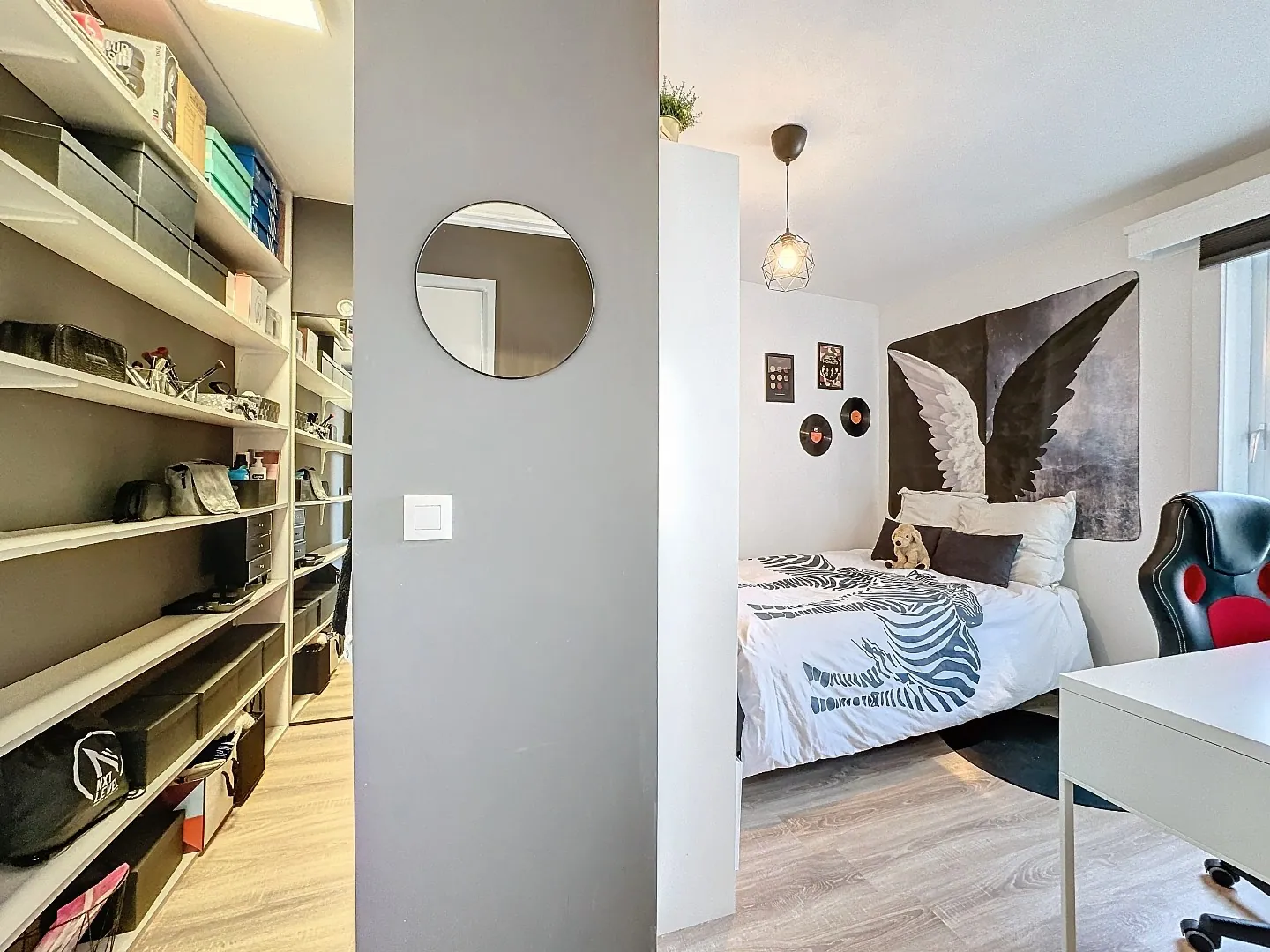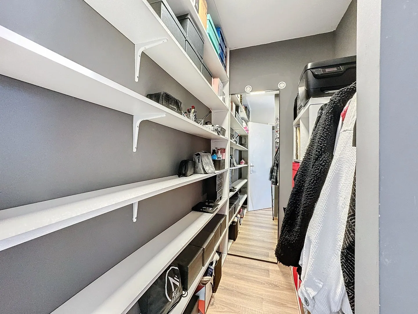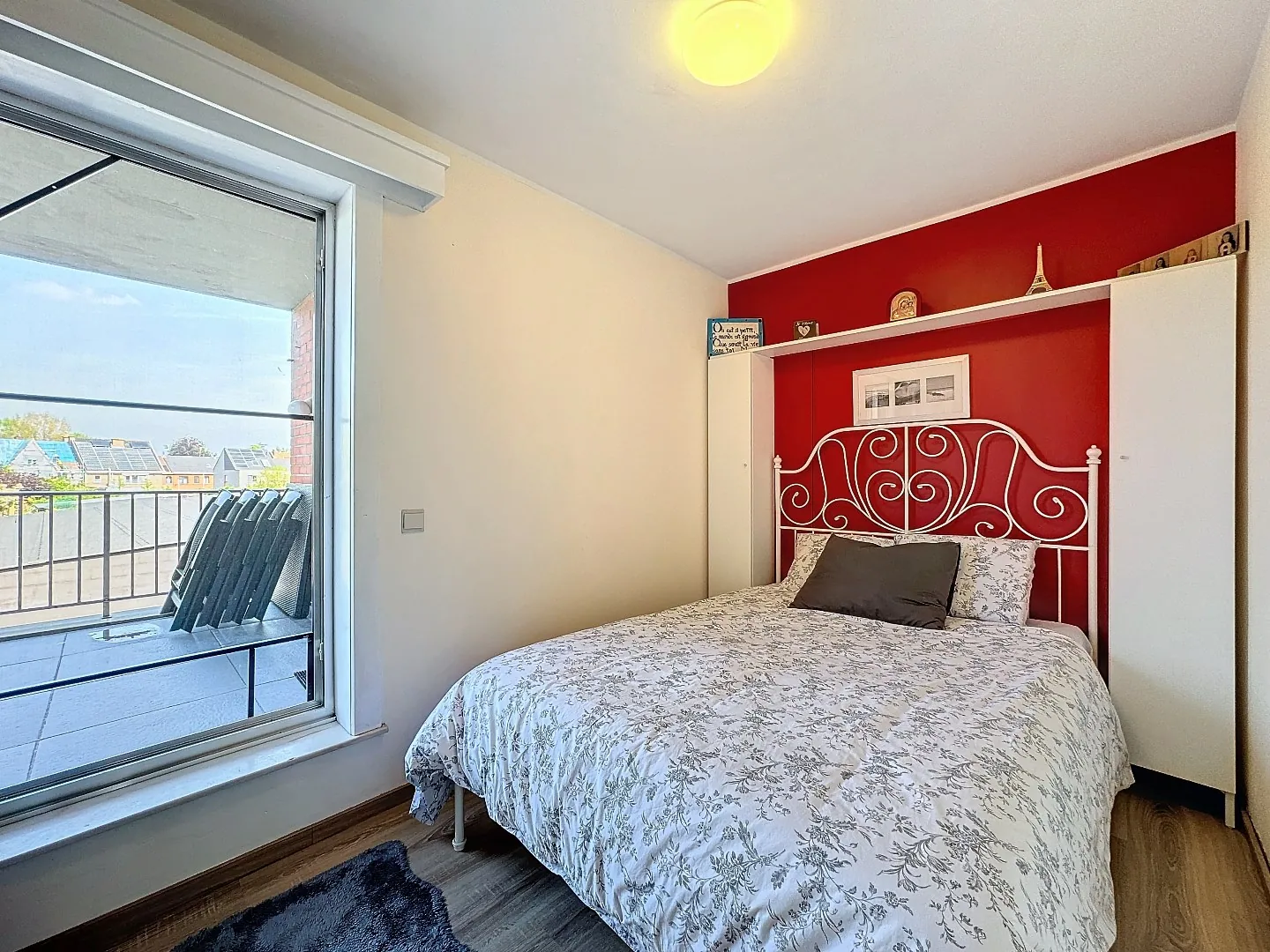 Indeling: inkom, vestiaire, lichtrijke en open leefruimte/eetplaats, keuken met geïnstalleerde toestellen, badkamer met regendouche, lavabo en toilet, 2 slaapkamers (1 grotere met dressing, 1 kleinere met aanpalend terras). Er is een ruime berging welke dienst doet als wasplaats, bereikbaar via het terras. Tevens is er nog een private bergruimte in de kelder en een privaat berghok in de inkom van het gebouw.