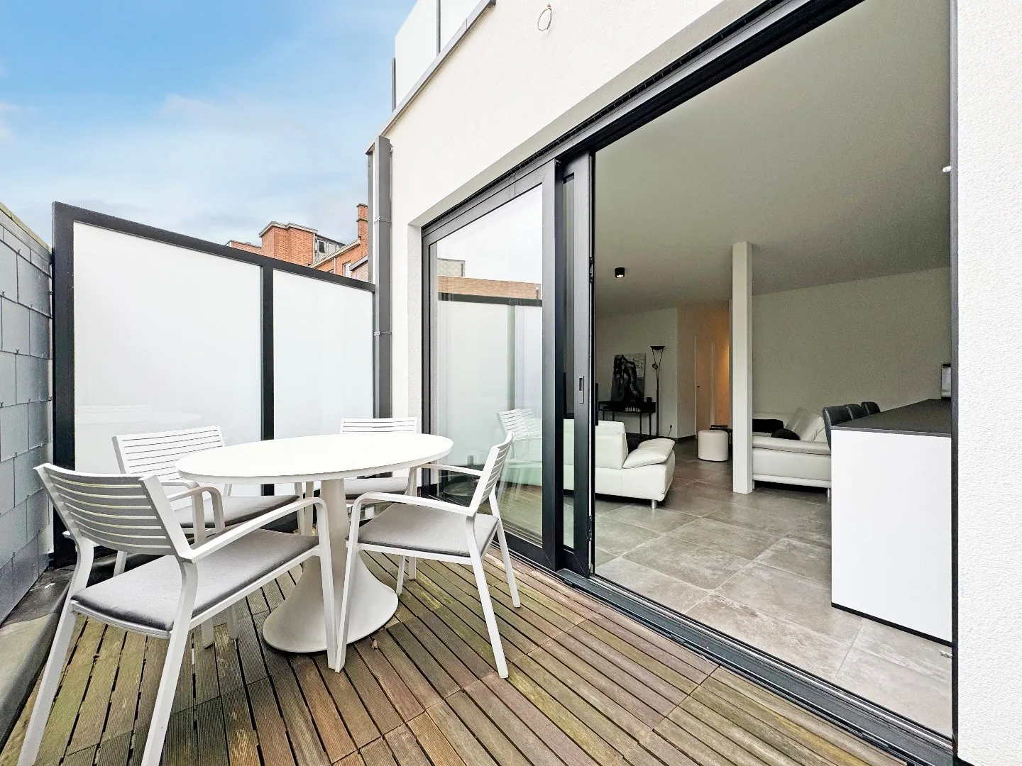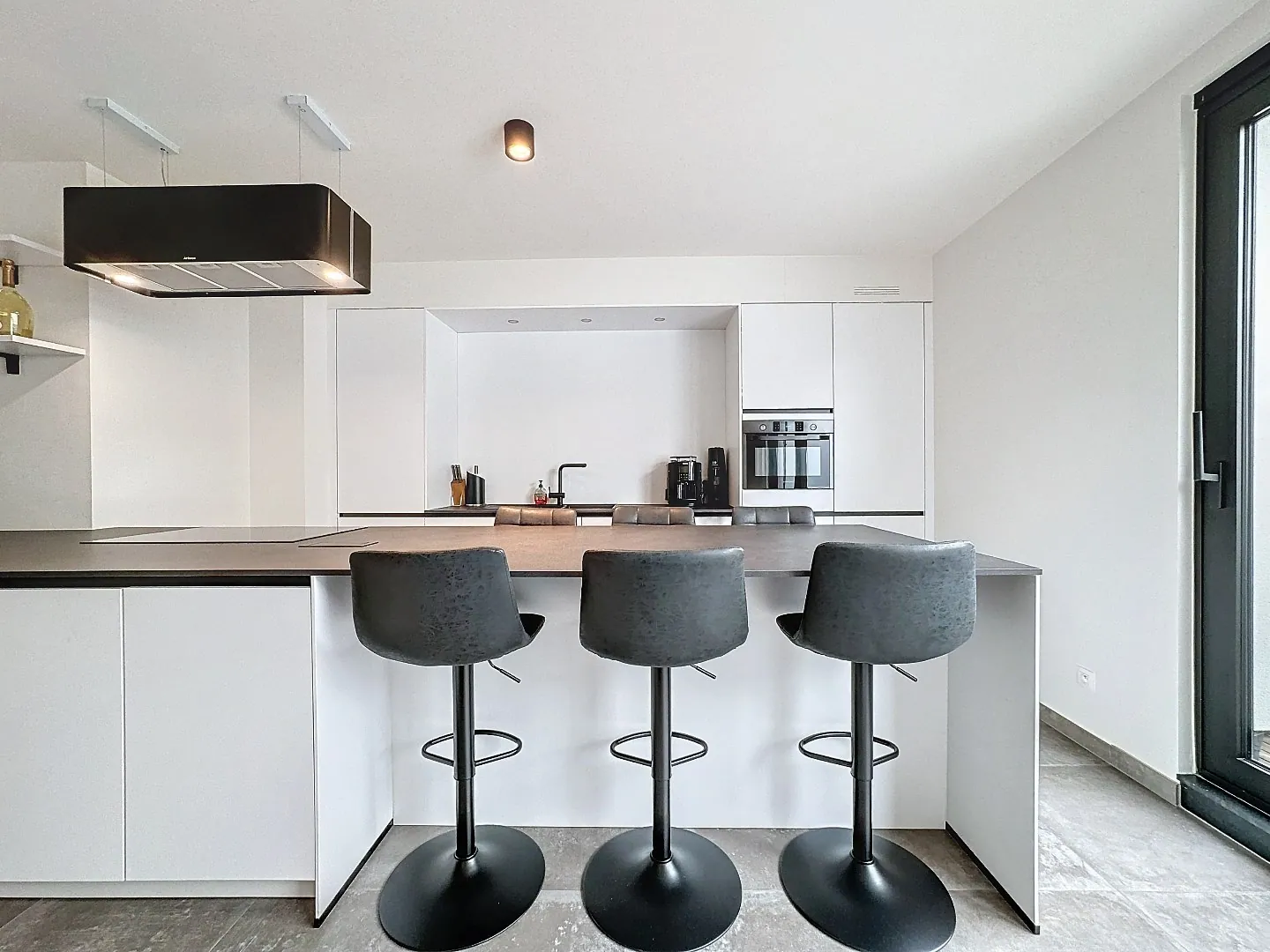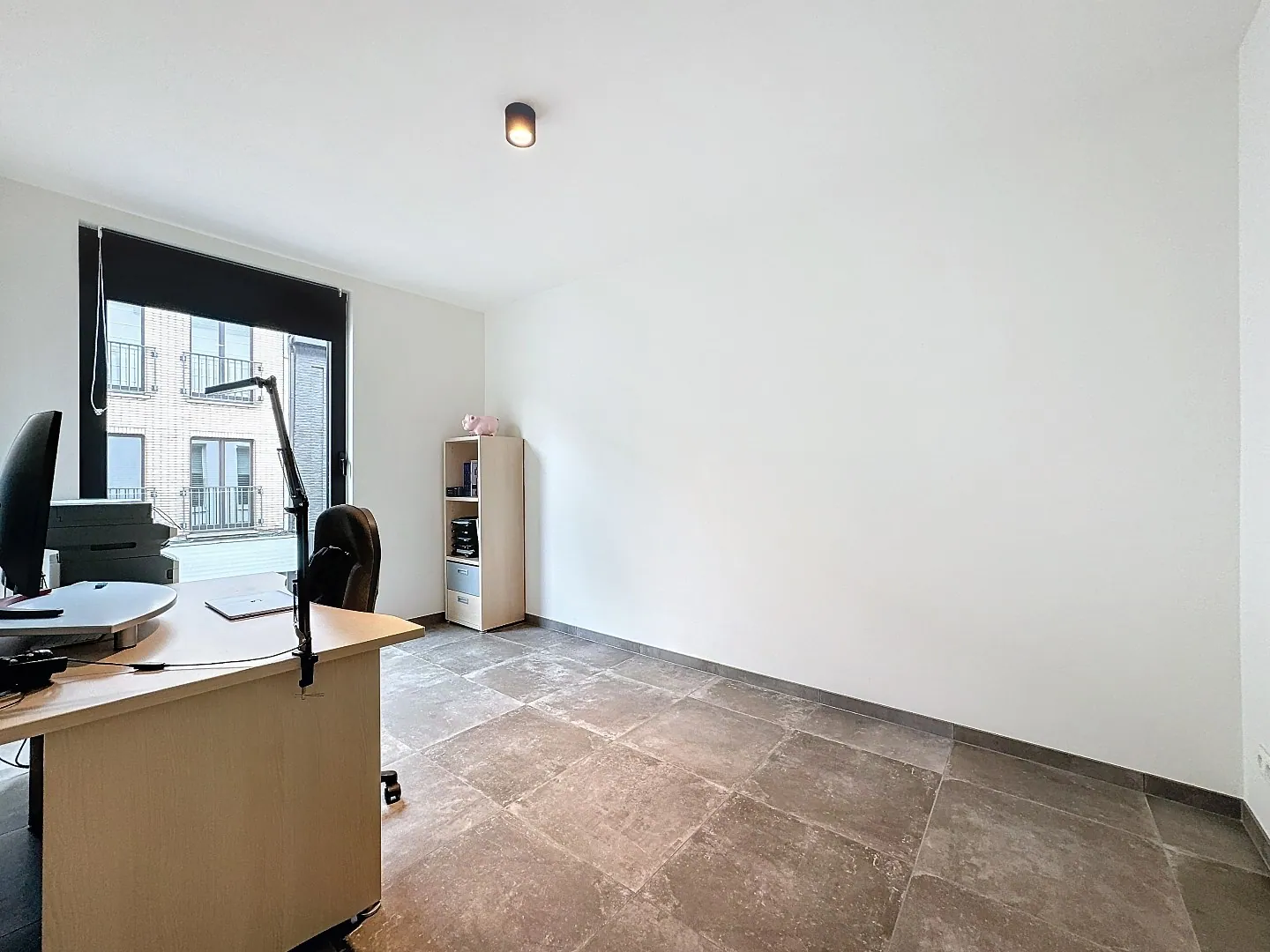 Indeling: inkomhal, lichtrijke en open leefruimte met uiterst ruime geïnstalleerde keuken, zuidgericht terras voorzien van alle privacy, berging met voorzieningen wasmachine, droogkast, waterontharder, omvormer zonnepanelen, ... badkamer met inloopdouche, lavabo, afzonderlijk toilet, 2 ruime slaapkamers waarvan 1 volledig voorzien van ingebouwde kastenwand. Verkoop onder BTW-stelsel (21% BTW op volledige koopsom). Kosten basisakte, aansluiting nutsvoorzieningen etc. inbegrepen in de prijs. IDEALE EIGENDOM VOOR WIE EEN BETAALBARE NIEUWBOUW IN HET CENTRUM WENST, OOK INTERESSANT ALS OPBRENGSTEIGENDOM! CV op aardgas (vloerverwarming), ramen HR-glas met ALU profielen, 3 zonnepanelen, E-peil: E19, label A, elektrische installatie conform het AREI. Woongebieden, vergunning uitgereikt, geen rechterlijke herstelmaatregel of bestuurlijke maatregel opgelegd, geen voorkooprecht, geen verkavelingsvergunning. Geen risicozone voor overstromingen, P-score B, G-score B.
