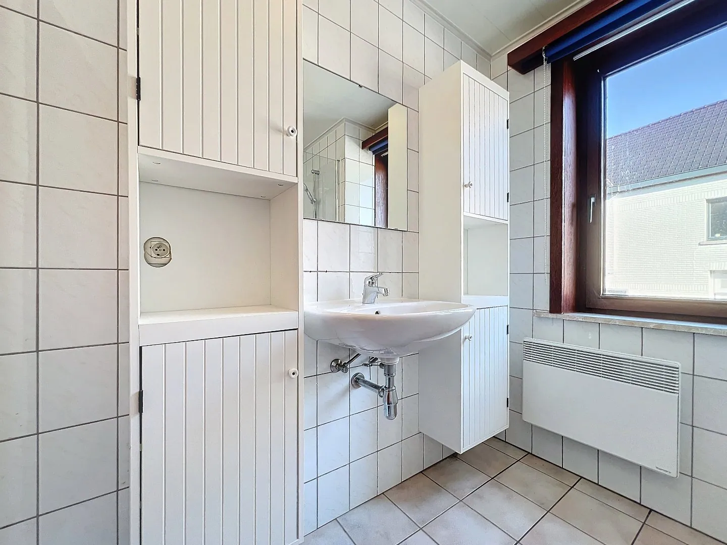 Indeling: inkom, lichtrijke woonkamer met plaats voor salon en eetplaats, open keuken (vernieuwd in 2019) voorzien van inbouwtoestellen, twee slaapkamers, badkamer (vernieuwd in 2019) en een apart toilet. Via het vensterraam in de woonkamer is er toegang tot een zuidgericht terras met een wijds groen zicht.