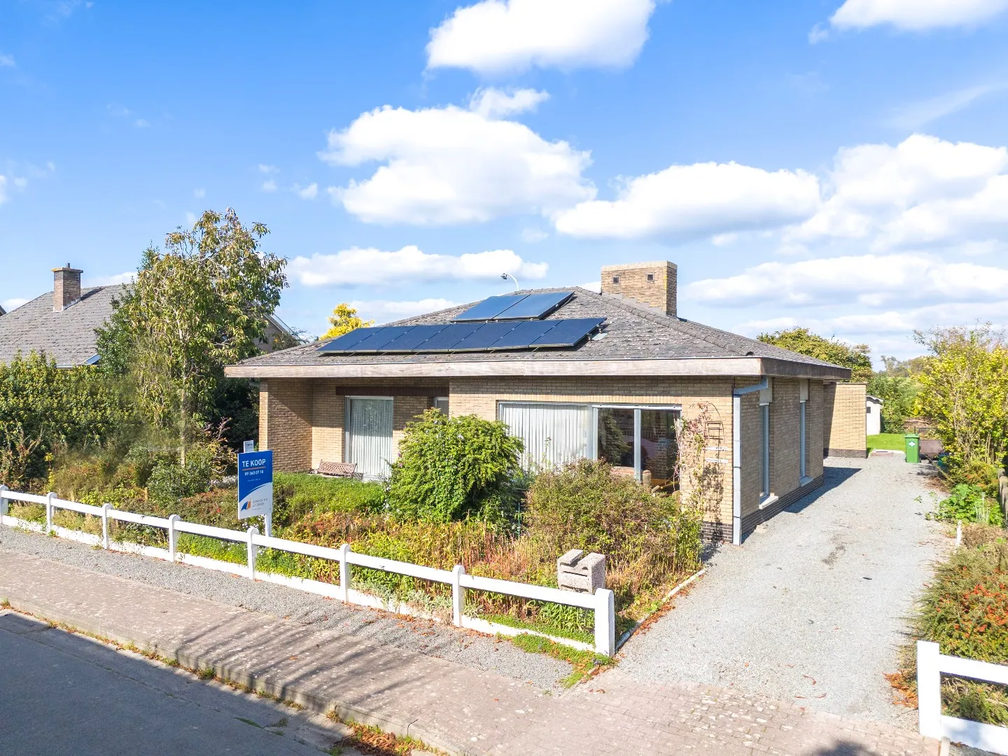 Oprit voor meerdere wagens. Leuke tuin achteraan met mooi groen vergezicht op weides.