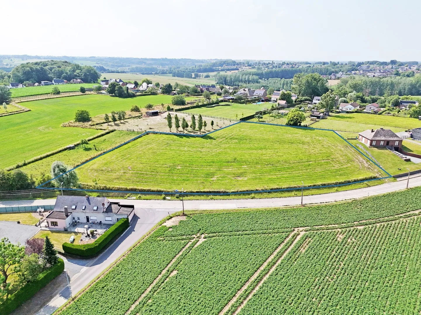 Deze verkaveling situeert zich langsheen de Bontestraat te Sint-Maria-Oudenhove, de gronden zijn uiterst landelijk doch vlot bereikbaar gelegen. Men bevindt zich op +/- 1,5km van de dorpskern van Sint-Maria-Oudenhove zijnde op wandel- of fietsafstand van winkel, horeca, schooltje, cashautomaat, bakker, ... De gronden hebben allen een straatbreedte van +/- 16m en een diepte van +/- 50m.