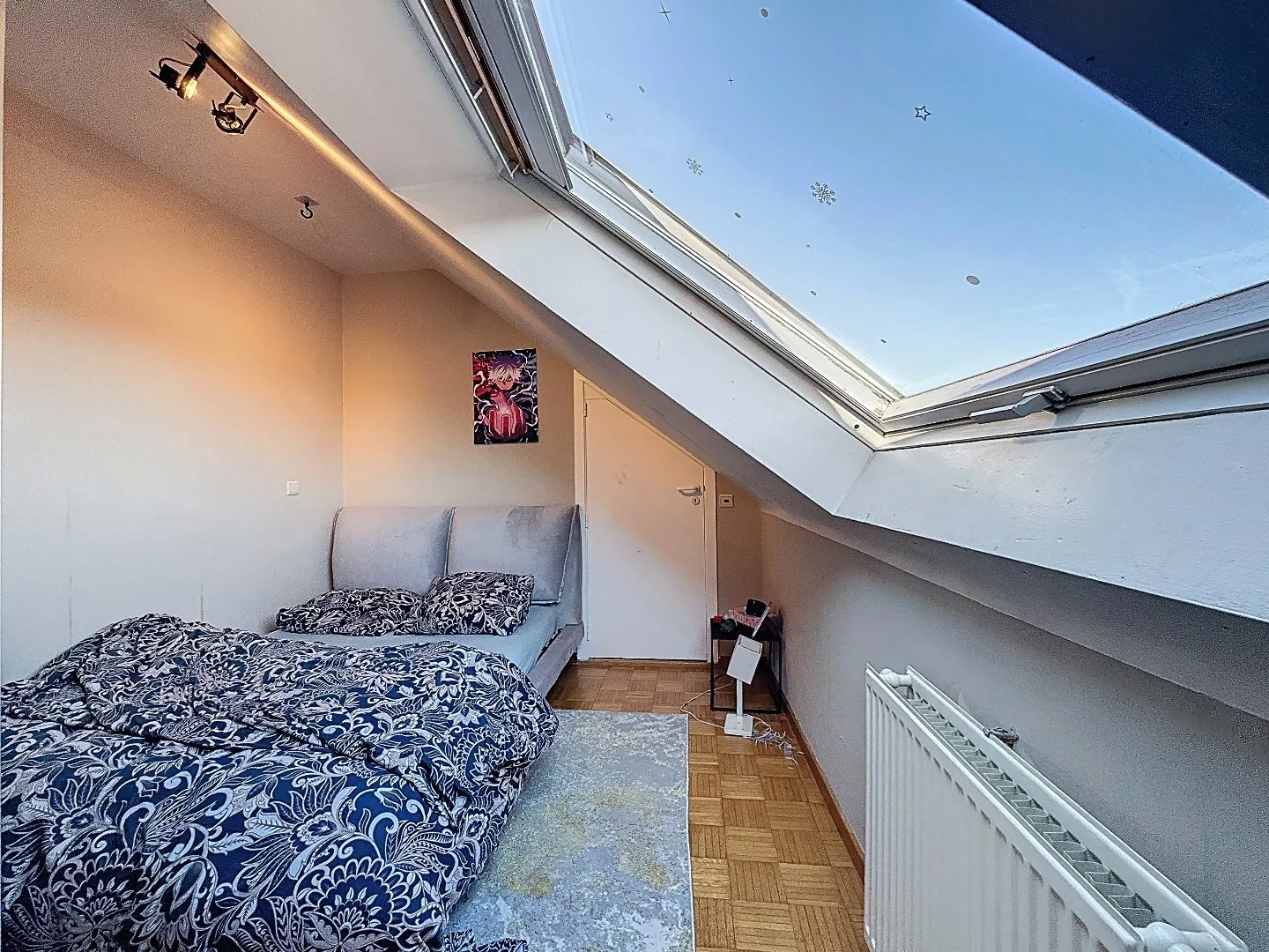 Indeling: inkomhal, lichtrijke en open leefruimte/eetplaats, ruime keuken met geïnstalleerde toestellen en aansluitende berging/wasplaats, zonneterras (oriëntatie op het westen), badkamer met ligbad, douchecel en dubbele lavabo, afzonderlijk toilet, 2 ruime slaapkamers waarvan 1 met aanpalend "zolder"berging.