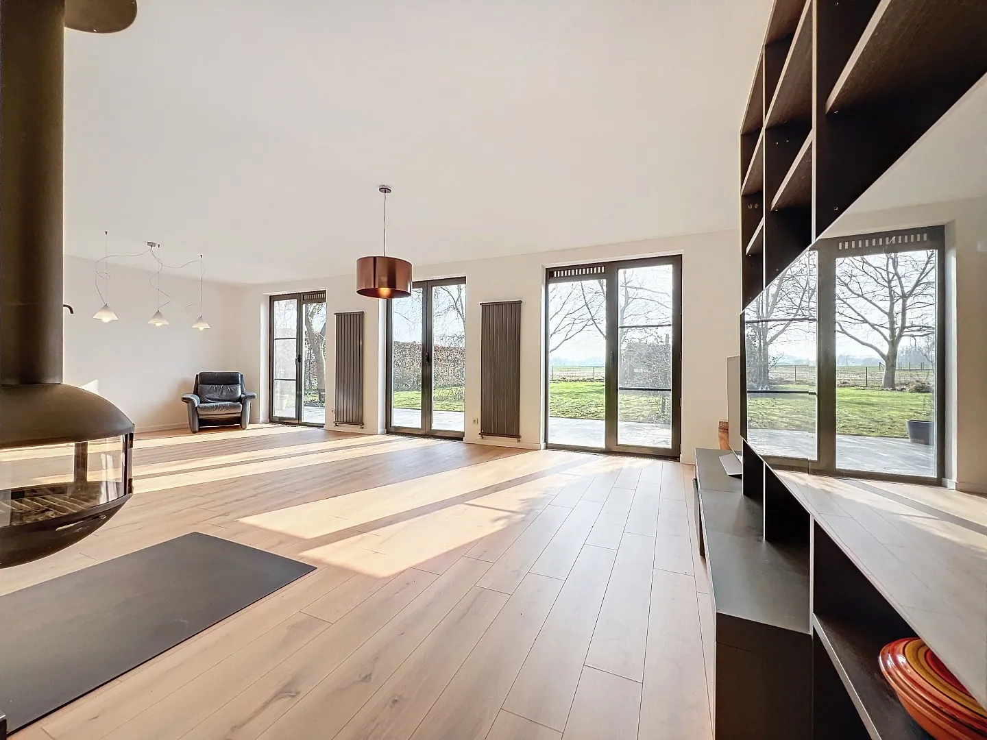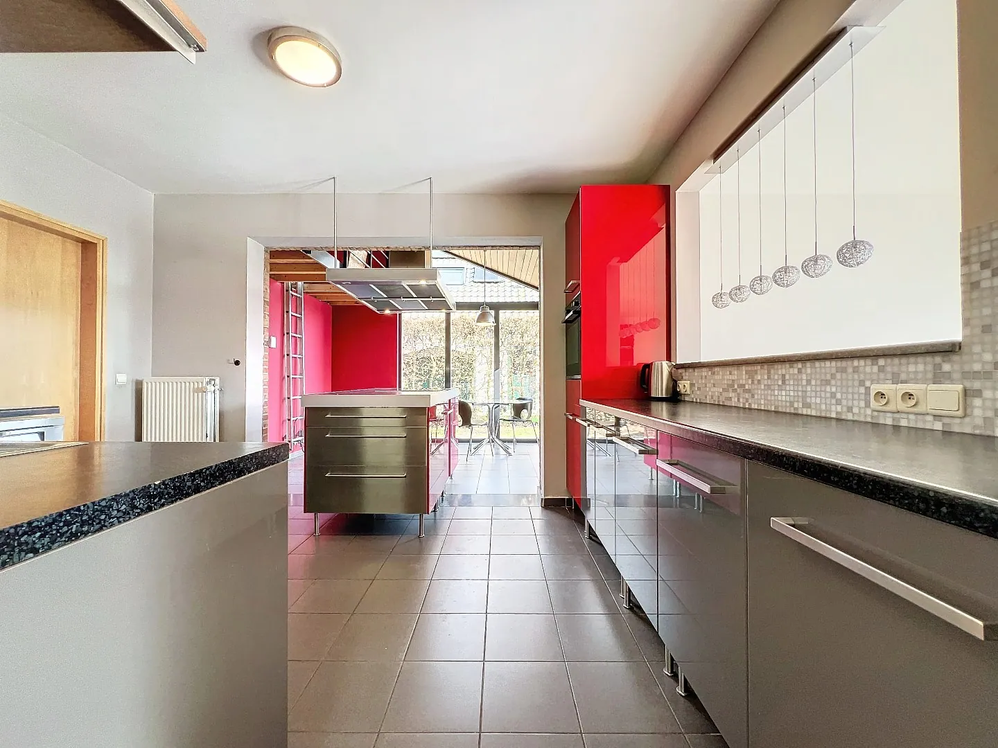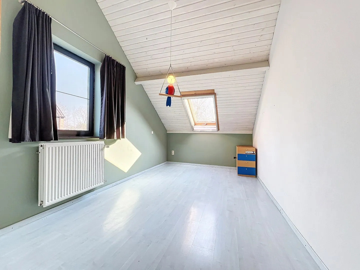 Indeling: het gelijkvloers beschikt over een ruime inkomhal met vestiaire, gastentoilet, polyvalente ruimte, bureau, ruime en lichtrijke woonkamer met design kachel, ruime ingerichte (halfopen) keuken en twee bergruimtes. De verdieping beschikt over een master bedroom met dressingwand die doorgeeft naar de ruime badkamer én drie gelijke kinderkamers. Leuke speelruimte boven de keuken (in de nok van het dak), toegankelijk via een laddertje. De polyvalente ruimte kan dienst doen als praktijkruimte, hobbykamer,... Vanuit de woonkamer en keuken is er toegang tot het gezellige terras en tuin met zuidoriëntatie. Oprit aan de voorzijde.