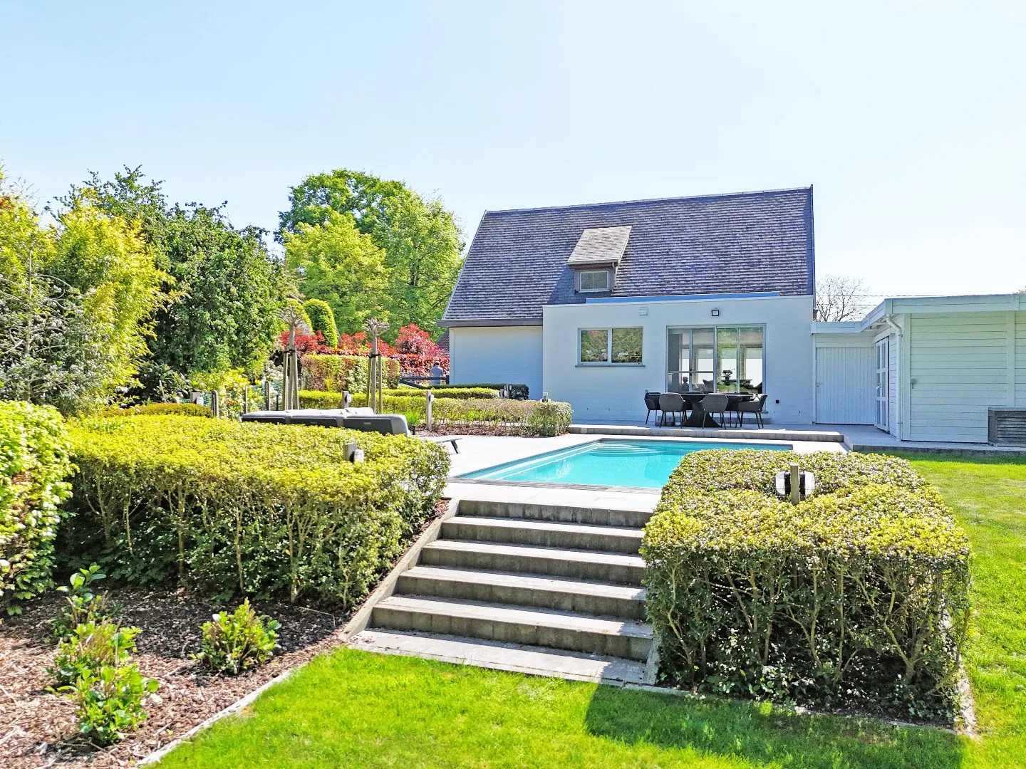 Na de grote renovatie (tuin volledig heraangelegd met zwembad, blauwsteen terrassen en mooie planten en bomen, carport en tuinberging, dak volledig gerenoveerd met natuur leien, nieuwe badkamer, douche, parket, ...) werd in 2017 nog een volledig nieuwe verwarmingsinstallatie geplaatst en in 2020 zonnepanelen (21 stuks met opbrengst tot 7.000 kW/jaar). Binnen schilderwerken in november 2022 en nieuwe LED plafond verlichting. Recentste vernieuwingen 2024: gevel in kalei en buitenschrijnwerk in padoek.