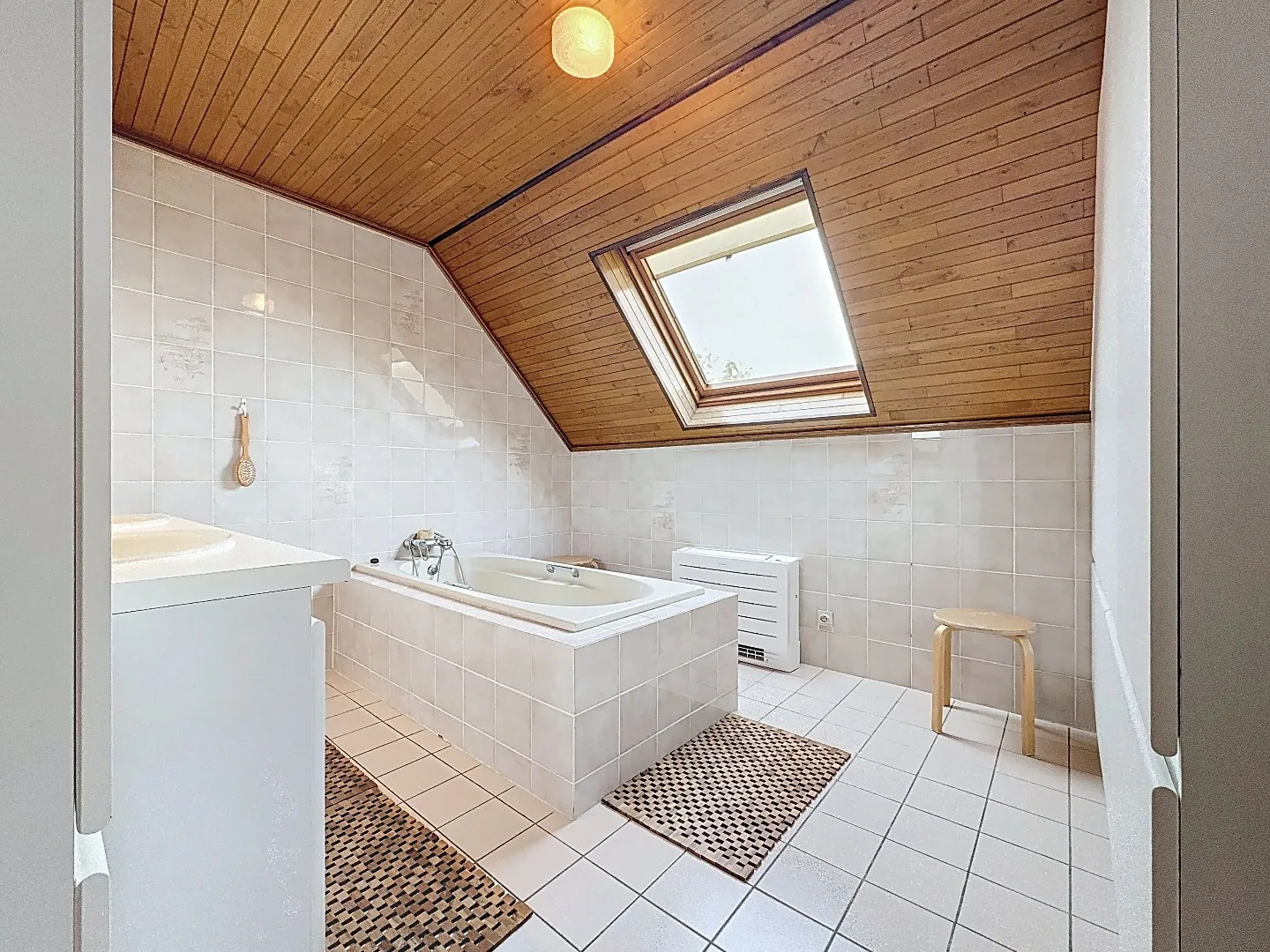 Indeling: inkomhal met vestiairehoek, gastentoilet, bureauruimte, lichtrijke en aangename woonkamer met inbouwcassette en zicht op de tuin, ruime keuken met aangrenzend een ruime berging en een garage. Op de verdieping is er een nachthal met leuk brugje, 3 ruime slaapkamers, een badkamer, apart toilet en een zolderruimte. Grote stapelzolder (toegankelijk via luik) aanwezig.