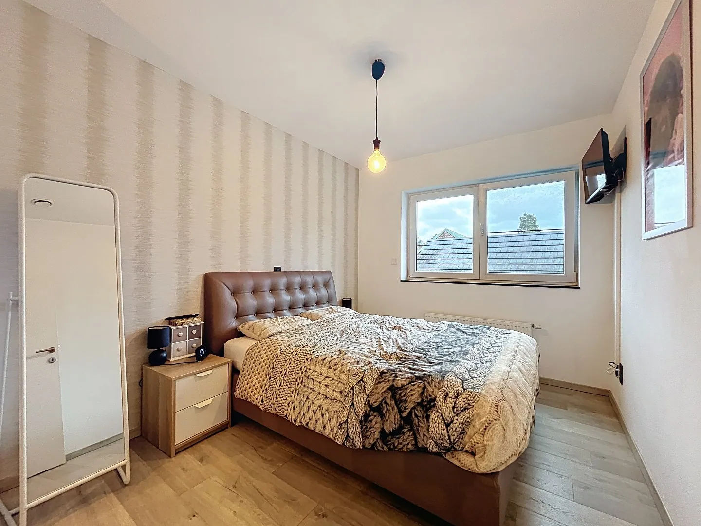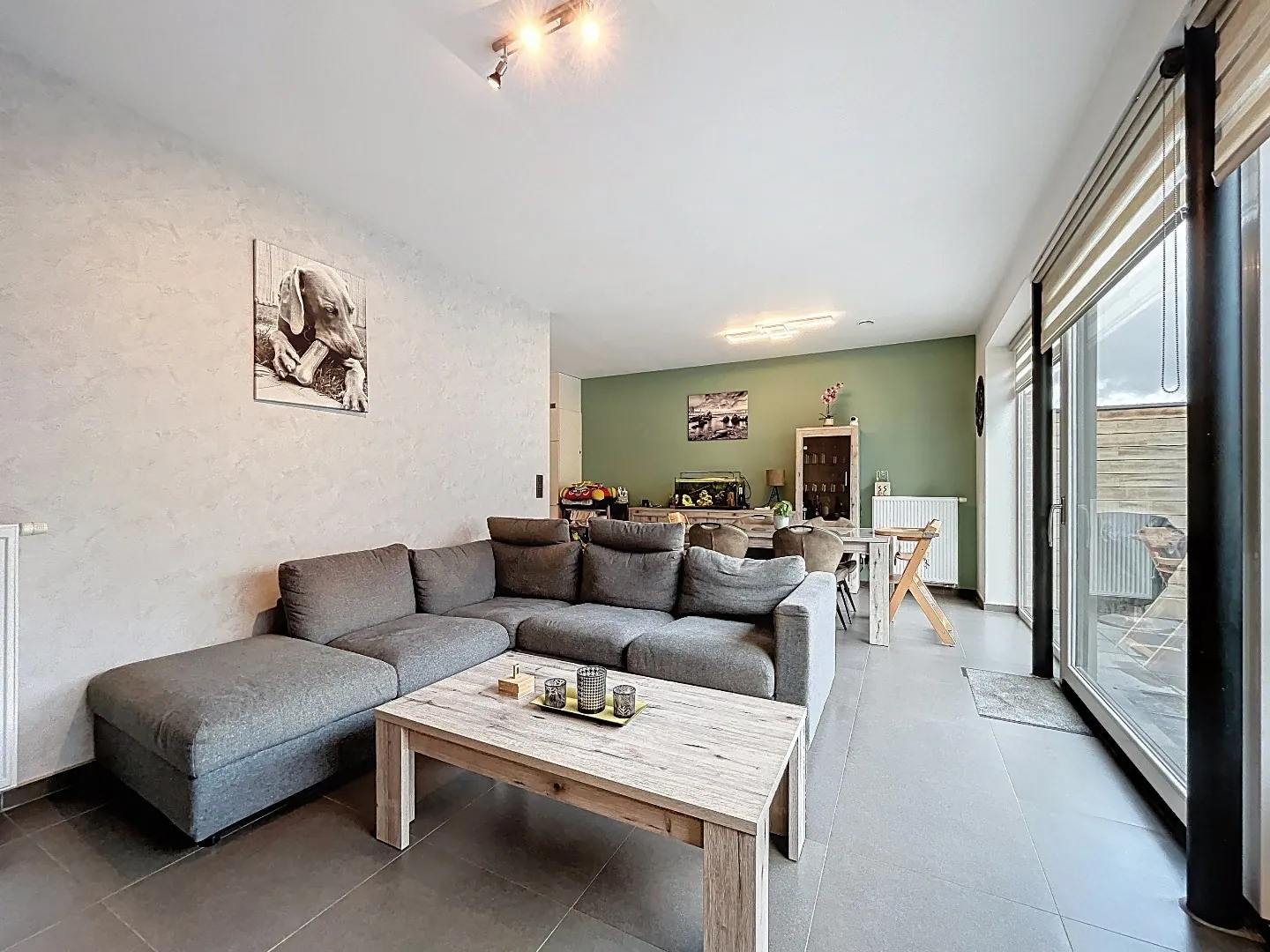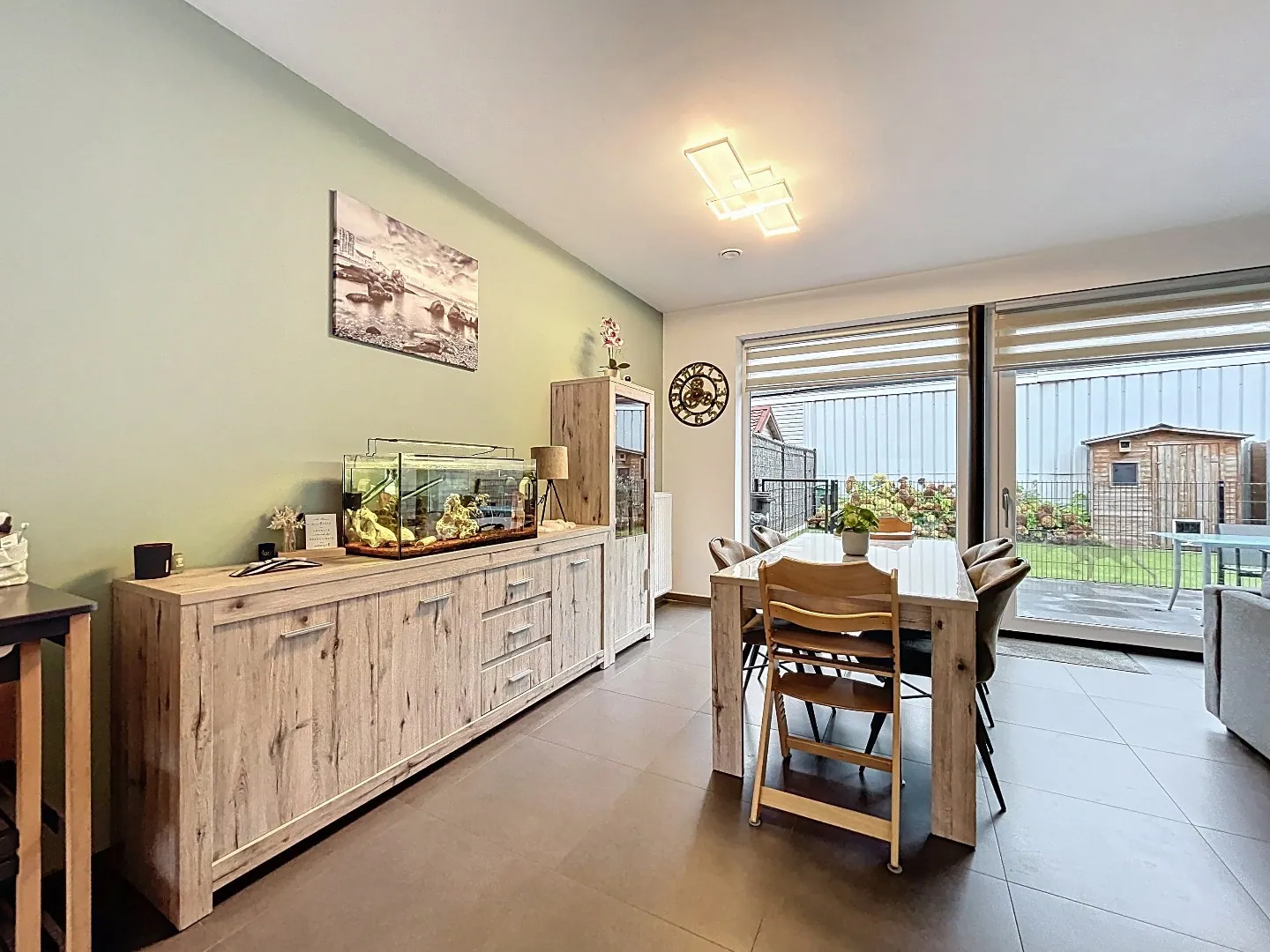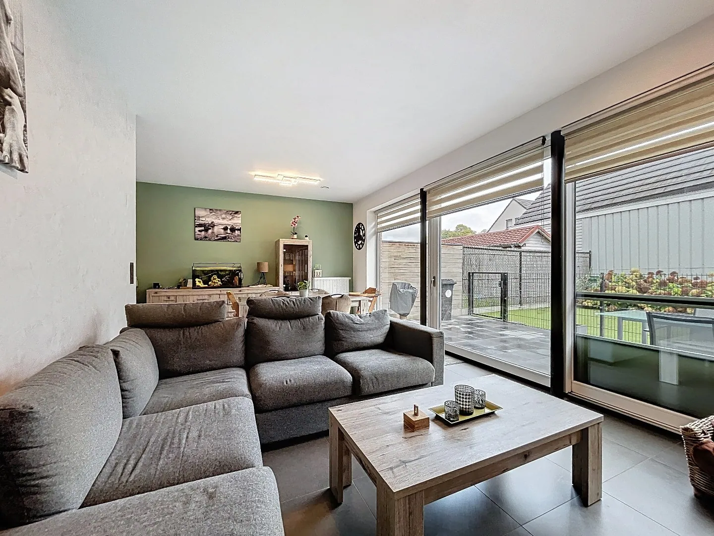 Buiten is er een gezellig en onderhoudsvriendelijk tuintje met terras, voorzien van alle privacy en aangelegd in kunstgras.