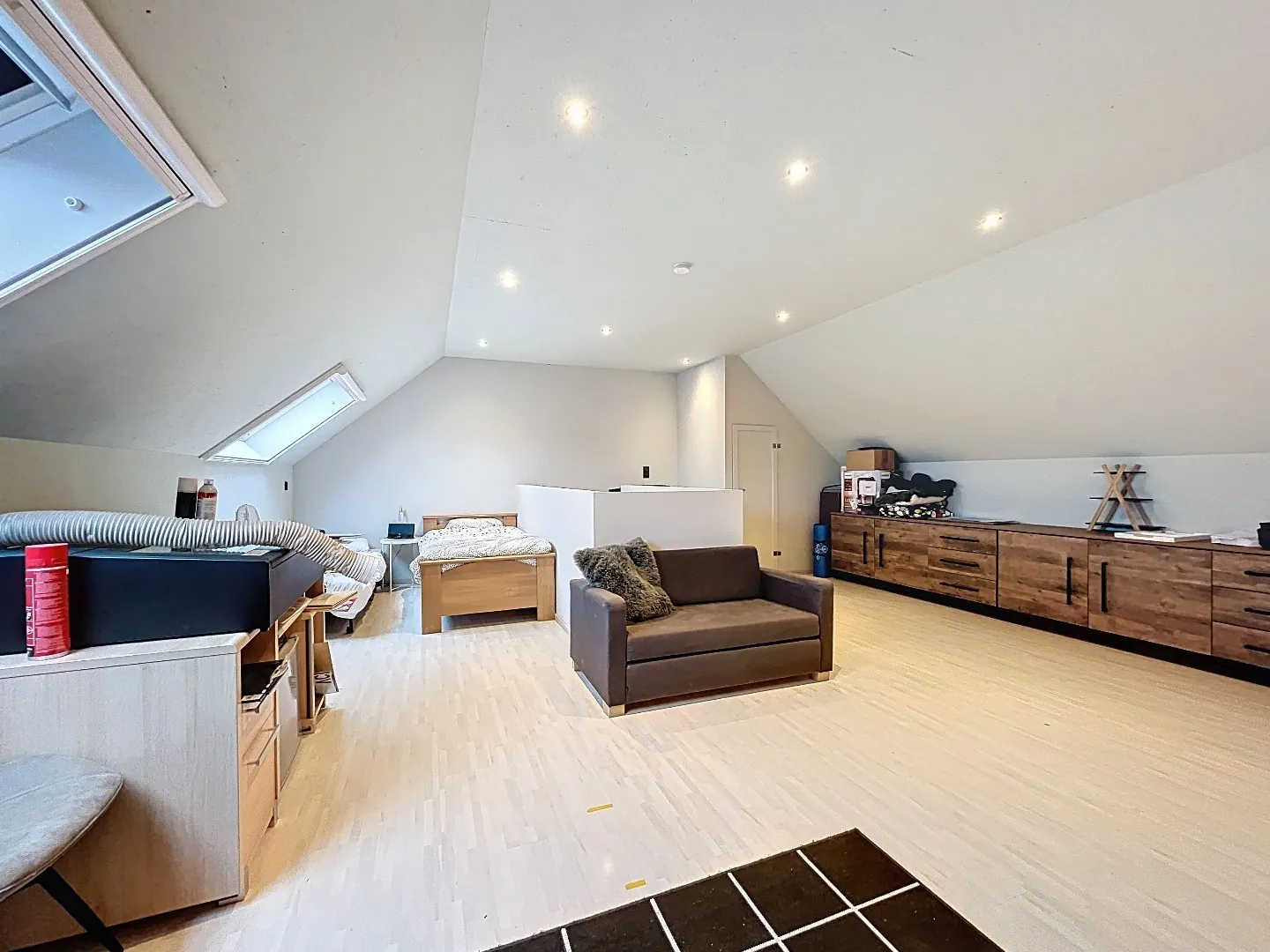 Tweede verdieping: ingerichte zolder, reeds bereikbaar met vaste trap. Kan dienst doen als bergruimte, hobbykamer, slaapkamer(s), ...
