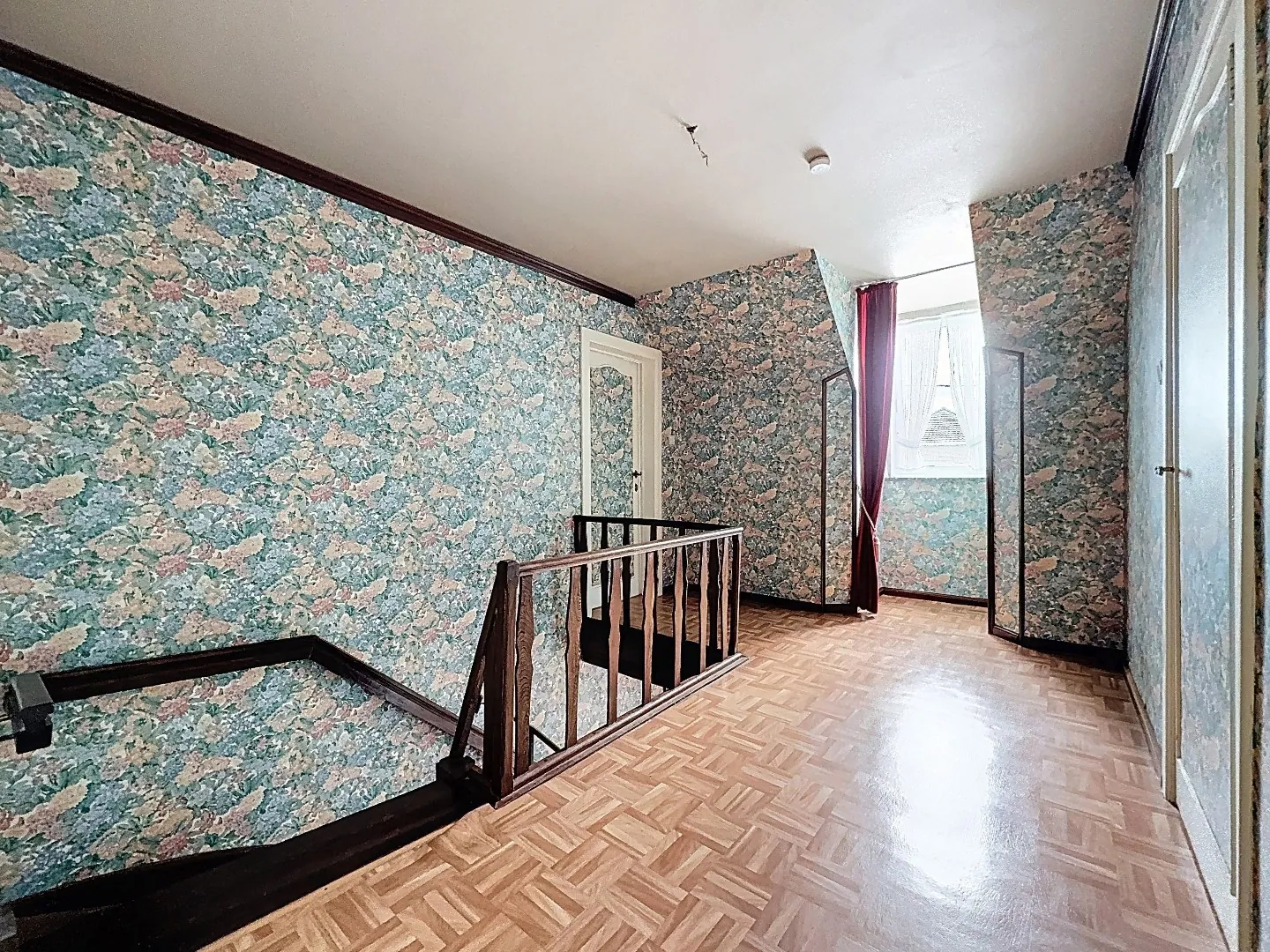 Indeling: het gelijkvloers bestaat uit een royale inkomhal, ruime en lichtrijke woonkamer met marmer schouwelement, aparte zitplaats of potentiële bureauruimte, ruime keuken met toegang tot de tuin, badkamer en apart toilet. Op de verdieping is er een nachthal, drie slaapkamers en kleine zoldertje terug te vinden. Kelder aanwezig