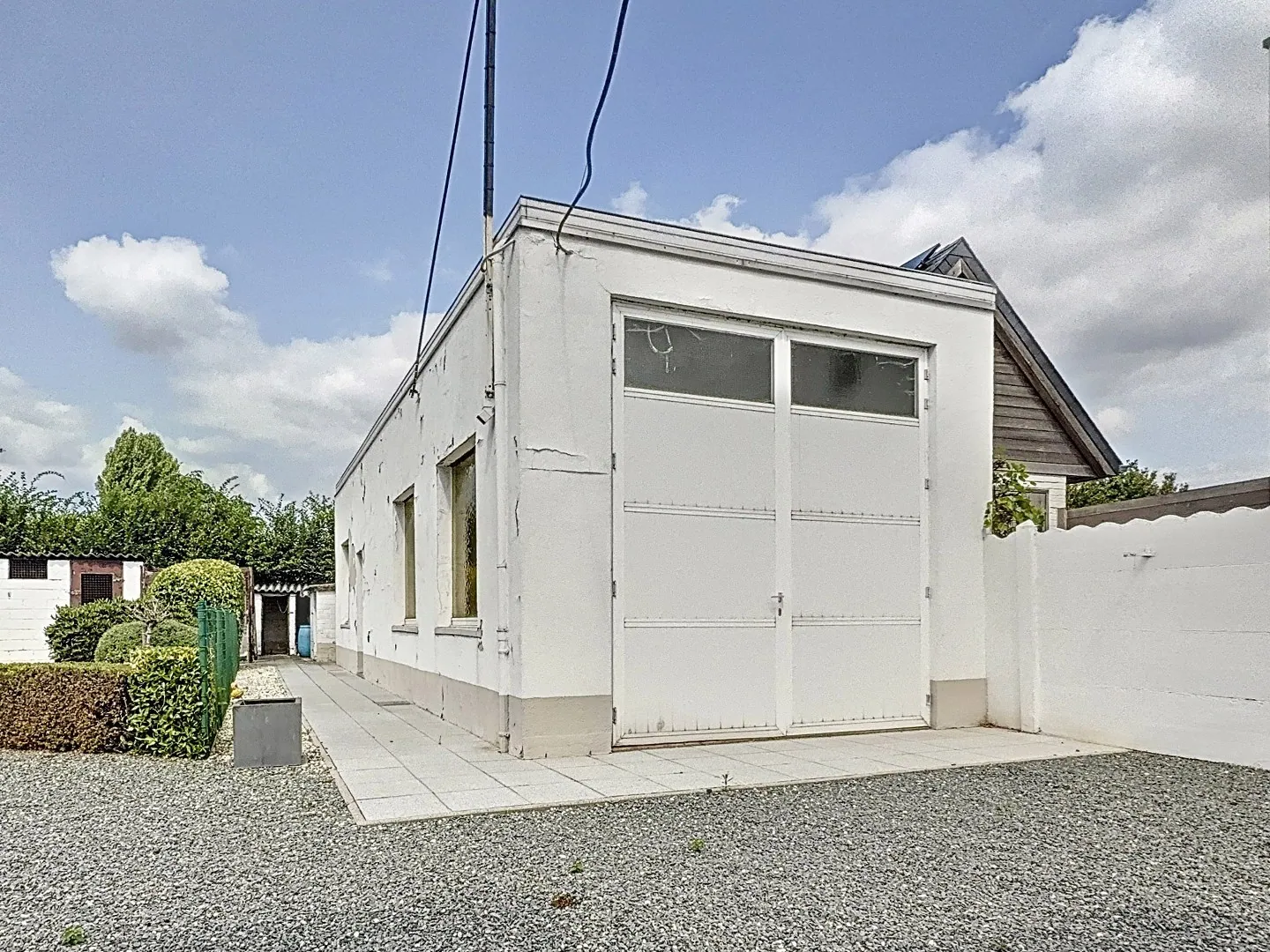 Verder zijn er nog twee aparte garages aanwezig. Eén van de garages heeft een oppervlakte van 50m², een hoogte van +/- 3,7m, is voorzien van een hoge poort en kan dus dienst doen voor een grote camionette of als kleine werkplaats.