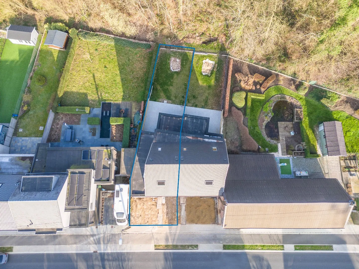 Voor de woning is er parkeervoorziening op eigen terrein en eventueel een voortuintje. Het mooi aangelegd terras en de tuin is volledig afgesloten en voorzien van privacy én kijkt uit op een bos.