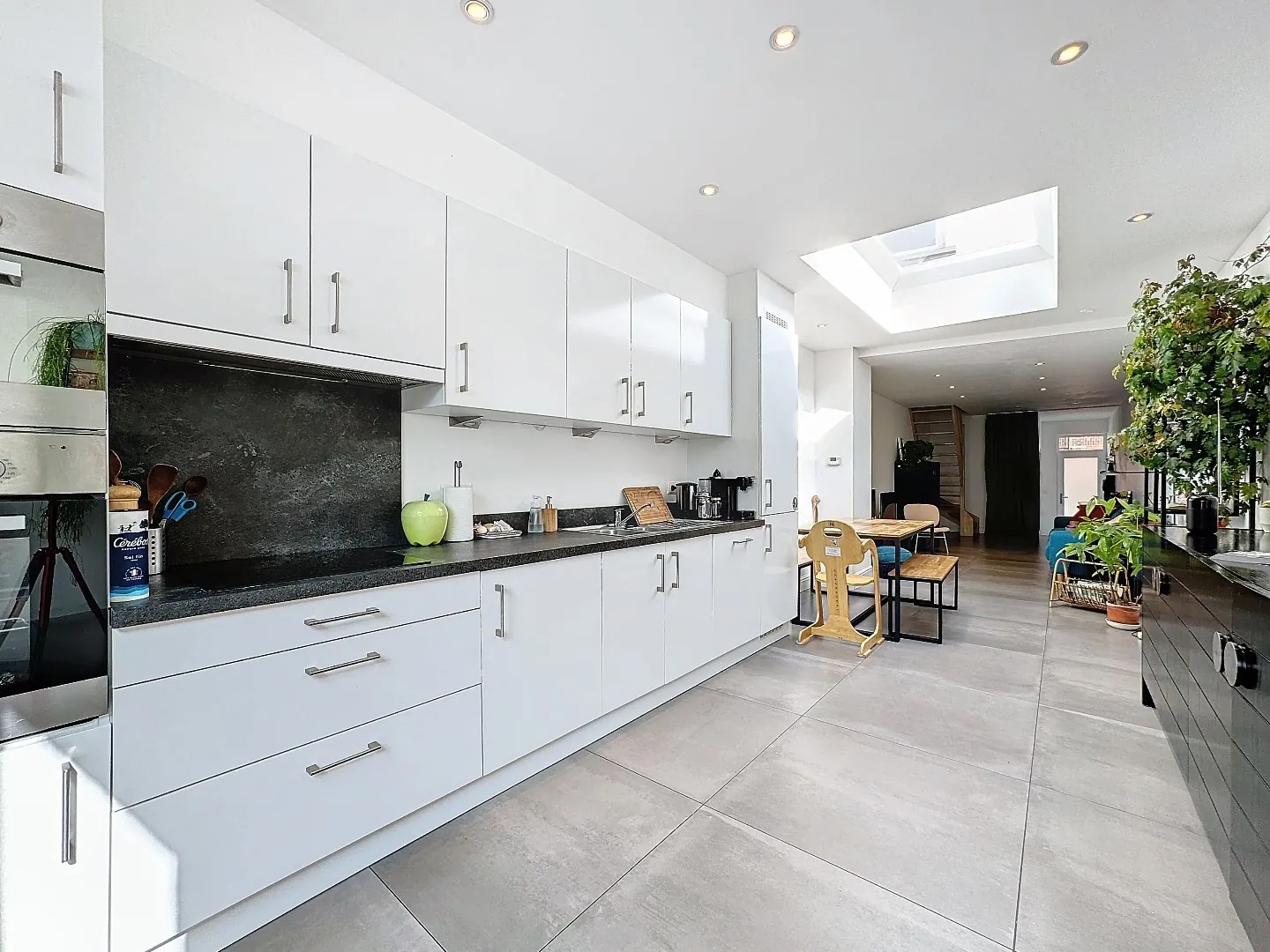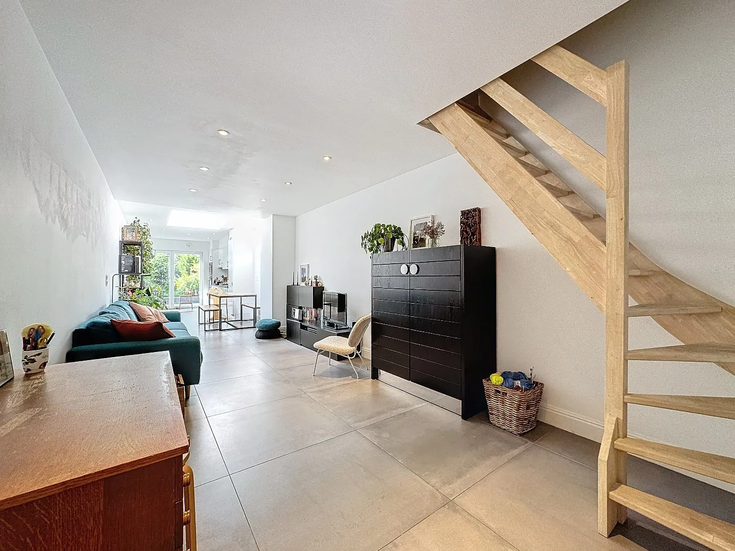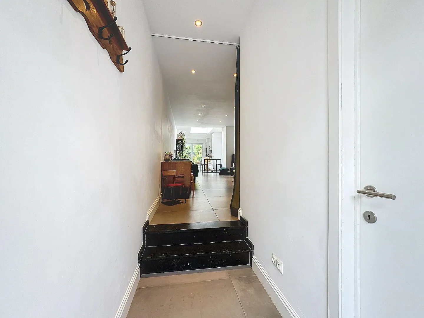 Indeling: inkomhal, berging, toffe en lichtrijke leefruimte / eetplaats / open keuken, uitgestrekte stadstuin met terras.
