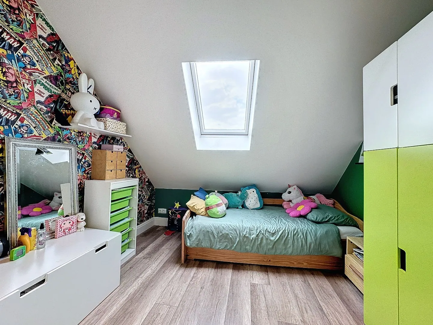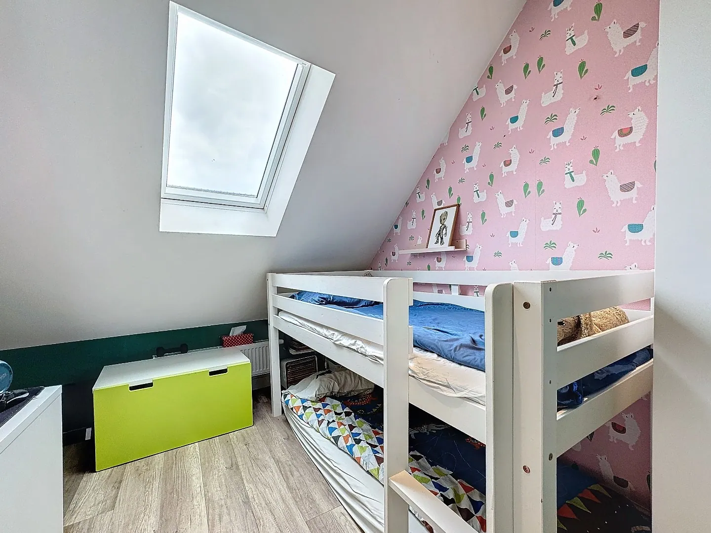 Tweede verdieping: 2 slaapkamers (welke dienst doen als kinderkamers).