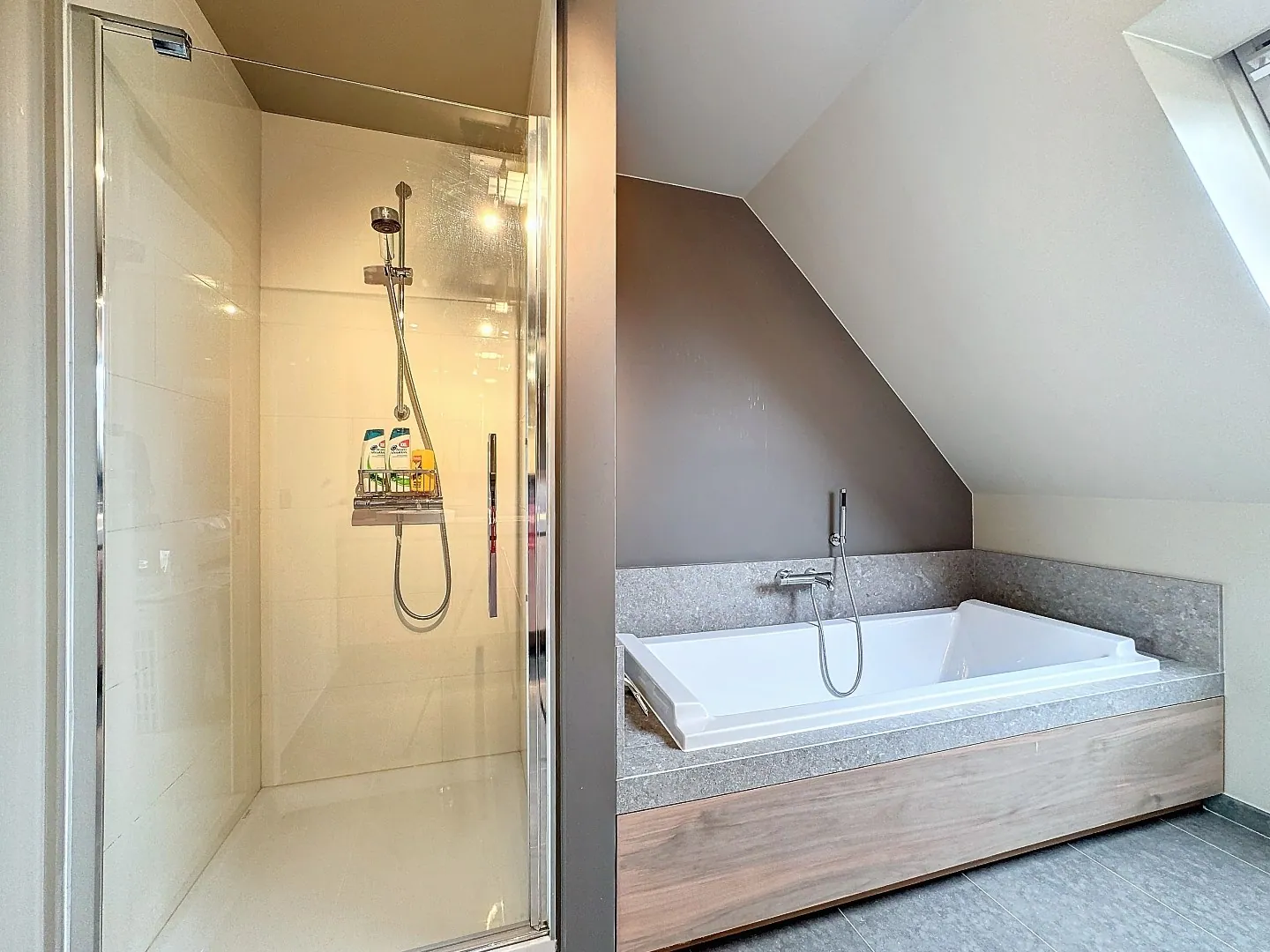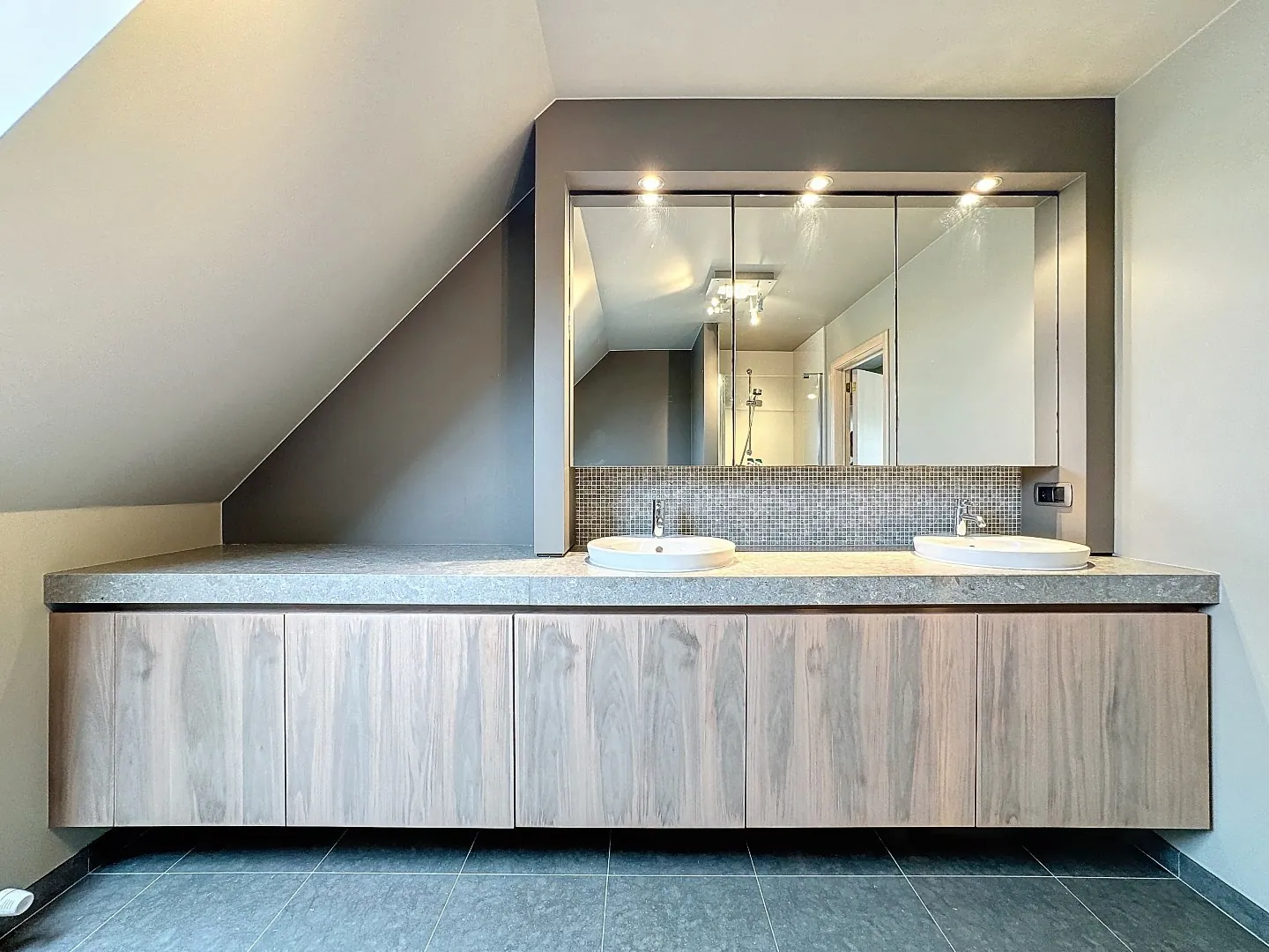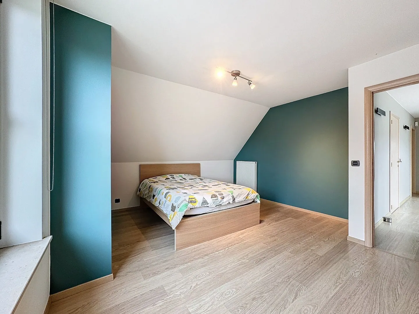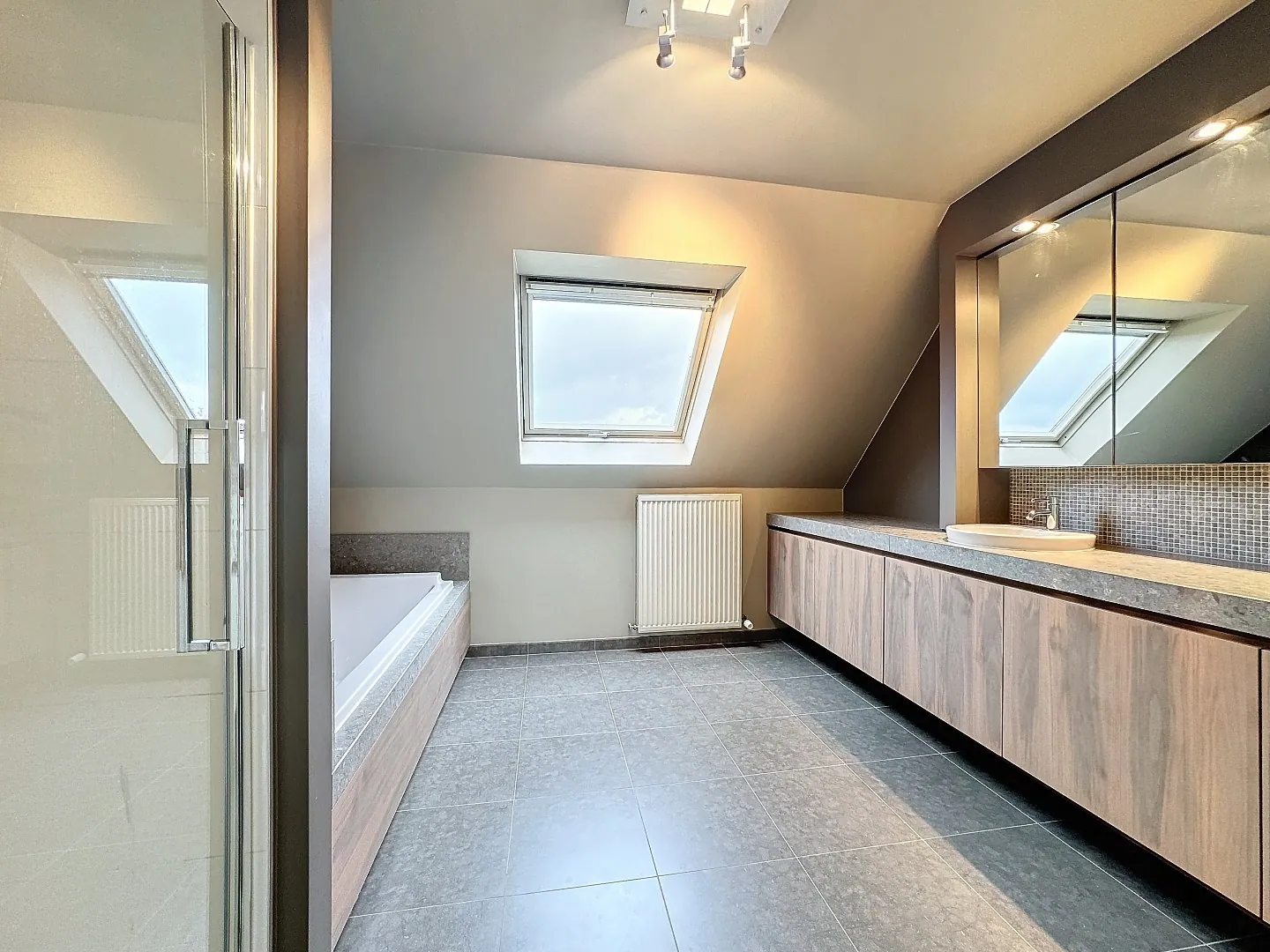 Eerste verdieping: nachthal, 4 ruime slaapkamers, prachtige badkamer met ligbad, douche en dubbele lavabo, afzonderlijk toilet. Er is een geïsoleerde zolder, bereikbaar via valluik.