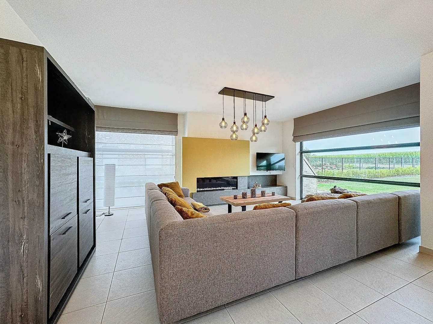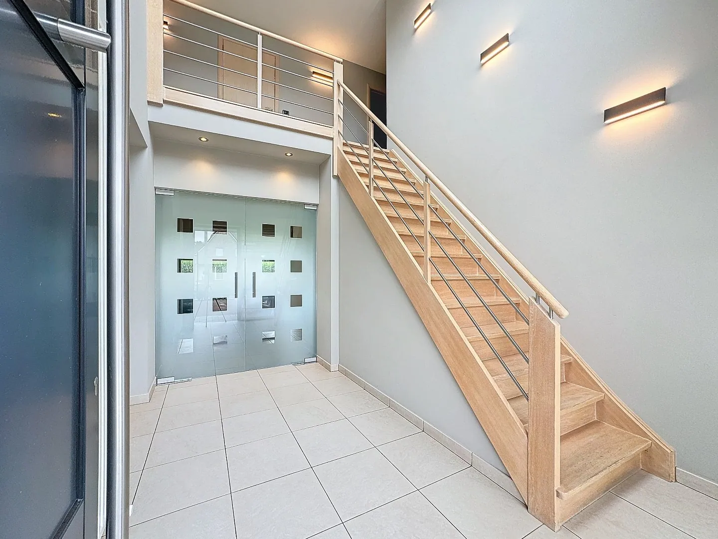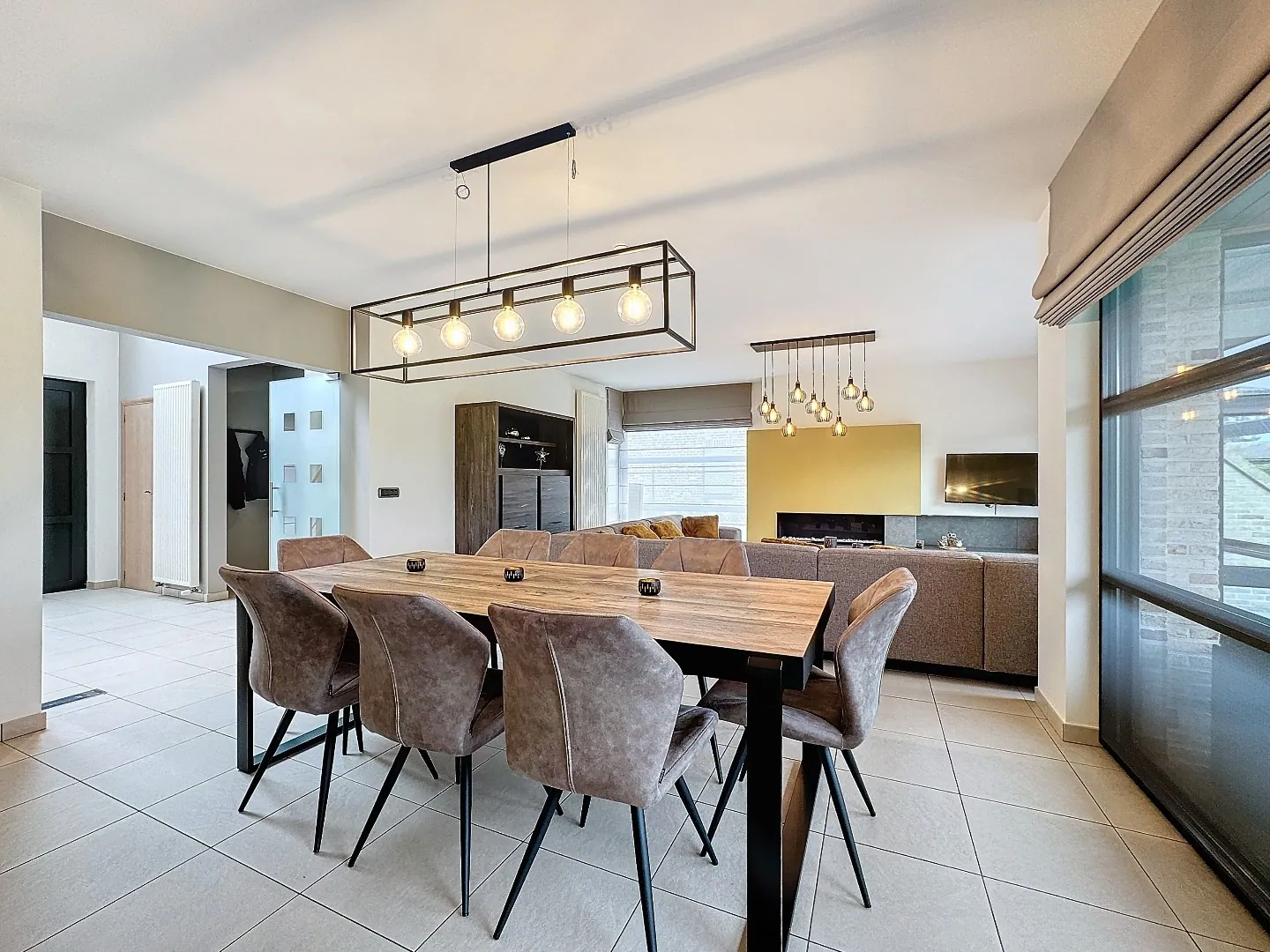 Indeling: inkomhal met gastentoilet, afzonderlijke bureauruimte, zeer gezellige leefruimte met mooie gashaard en eetplaats, hyper geïnstalleerde keuken (Miele toestellen, stoomoven, industriële dampkap, ...), wasplaats/berging met ingemaakte kasten en douchecabine, dubbele garage met automatische sectionale poort, prefab kelder.