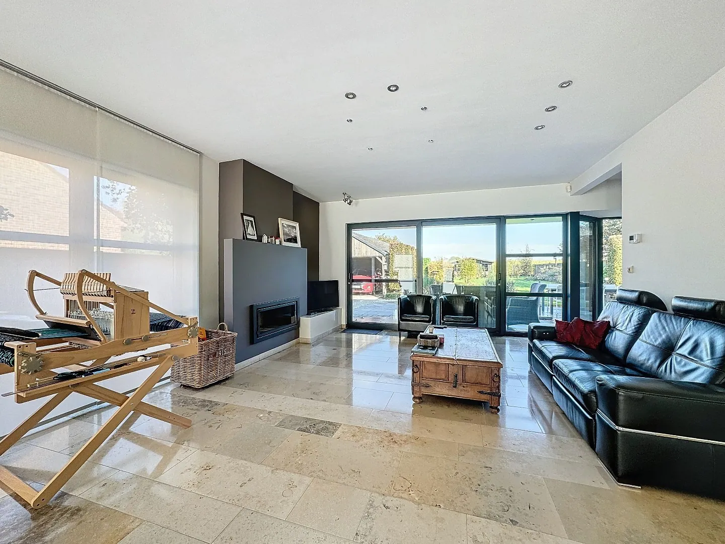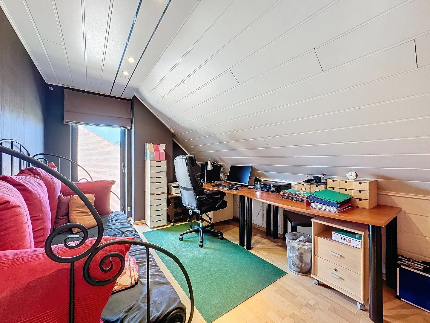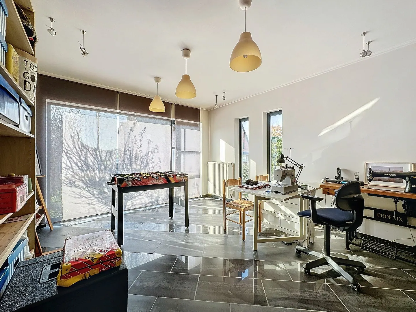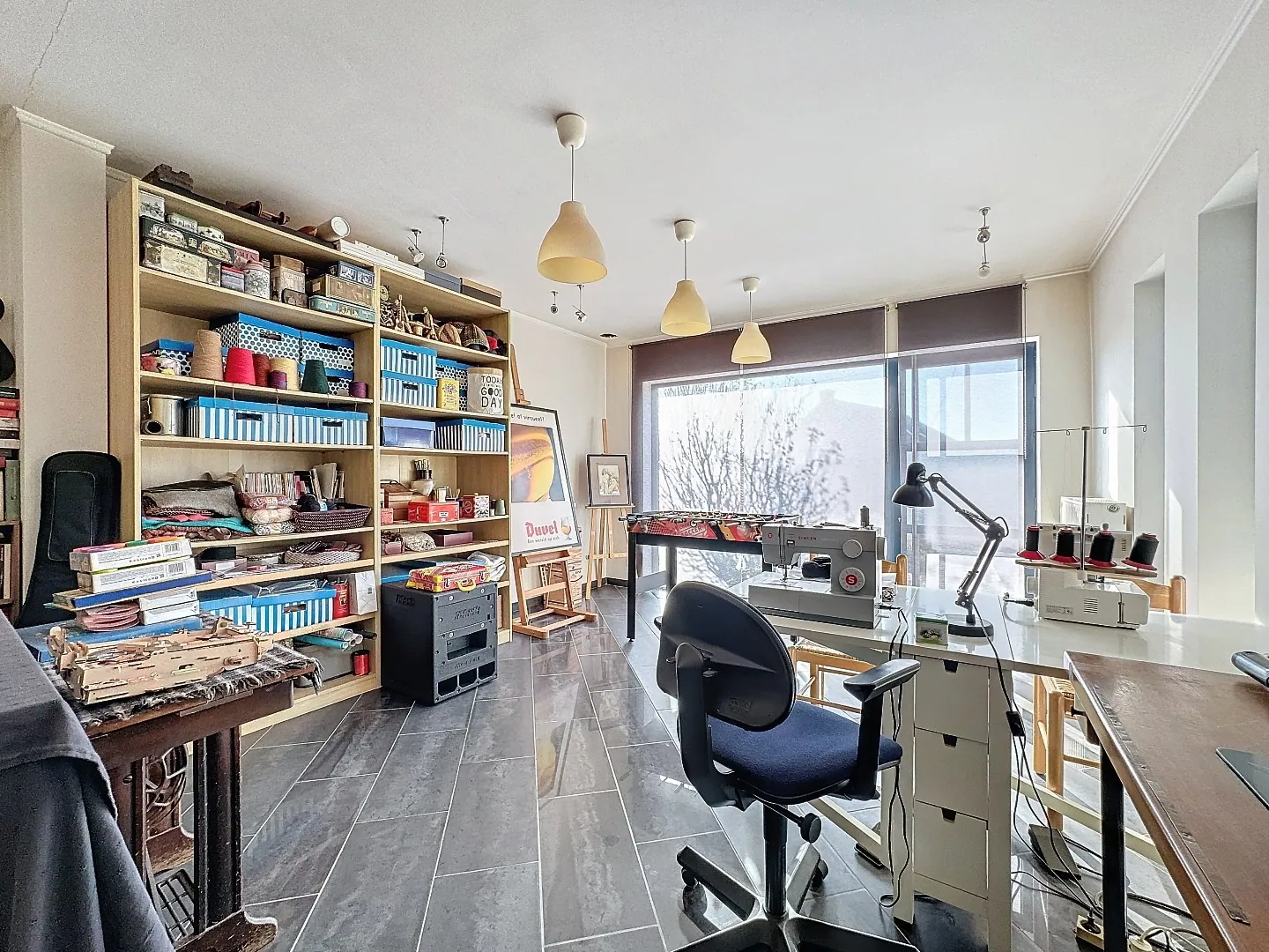 Indeling: grote inkomhal met vide, gastentoilet, zeer gezellige leefruimte met houtkachel en aansluitende eetplaats, geïnstalleerde keuken met eiland, wasplaats/berging, koele berging, douchekamer met lavabo, afzonderlijke bureauruimte van +/- 25m² (voorheen ingericht als kapsalon, waterleidingen nog aanwezig!).
