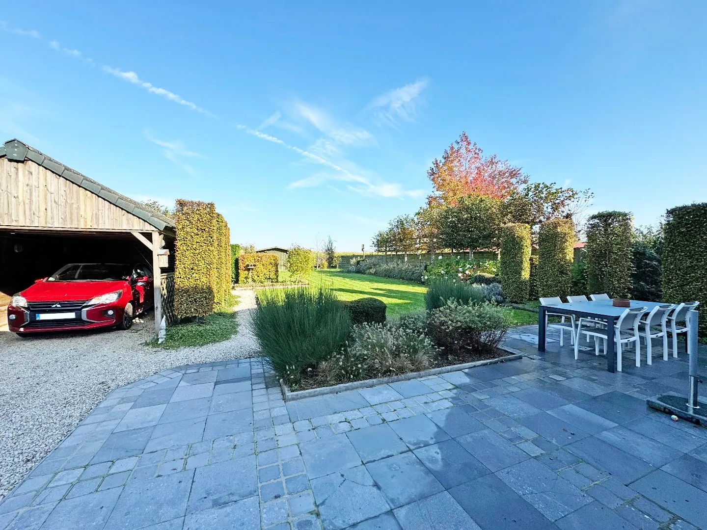Buiten is er nog een ruim terras, grote carport met berging, een mooi aangelegde tuin, tuinhuis, ruime oprit, extra parkeerplaatsen vooraan, ...