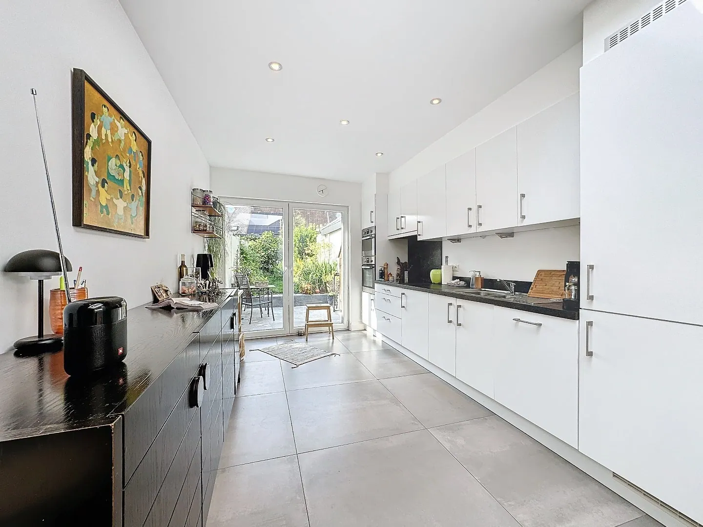 Indeling: inkomhal, berging, toffe en lichtrijke leefruimte / eetplaats / open keuken, uitgestrekte stadstuin met terras.