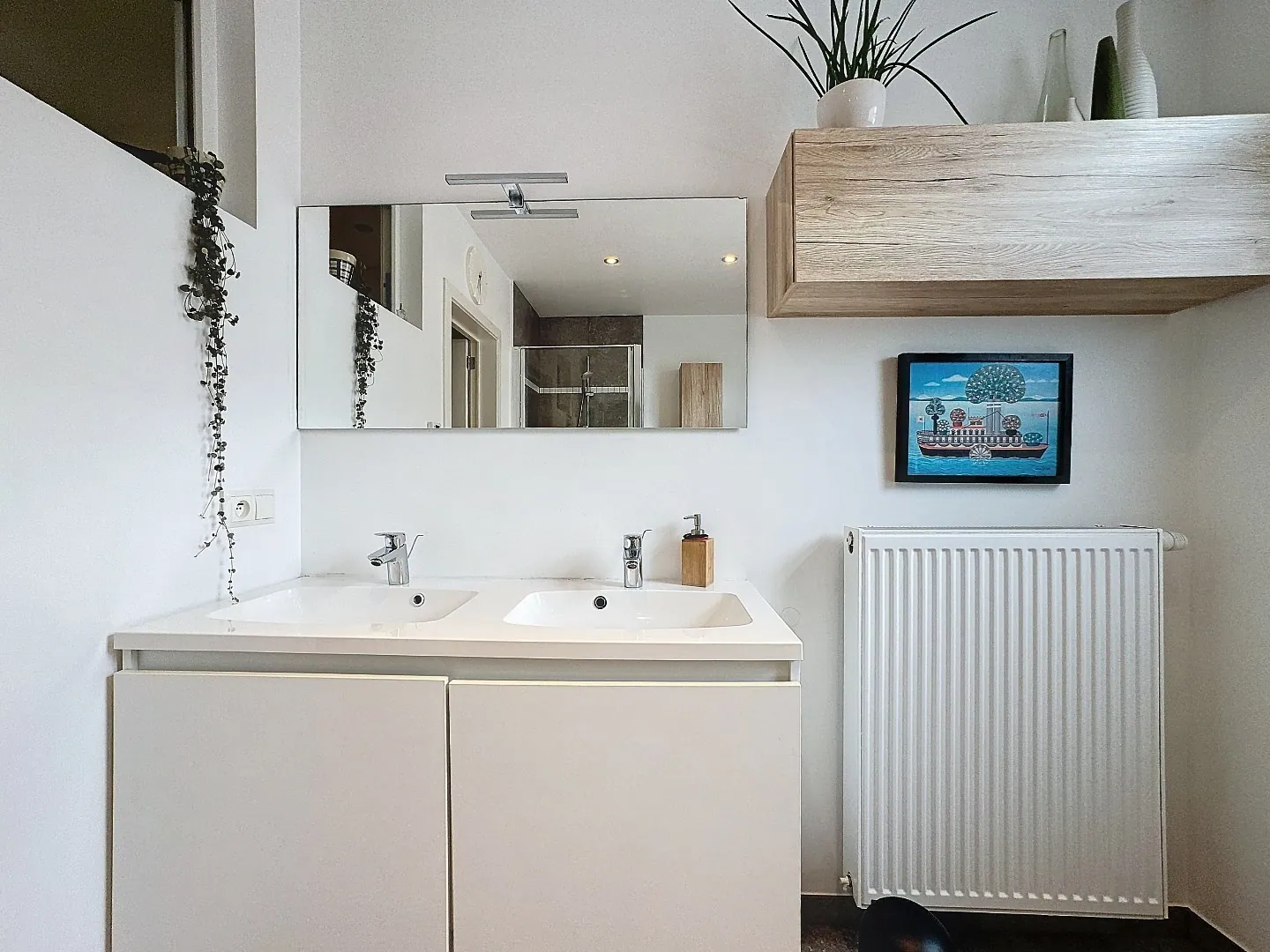Eerste verdieping: nachthal, 1 slaapkamer, badkamer met ligbad, douchecabine, dubbele lavabo, afzonderlijk toilet, wasplaats.
