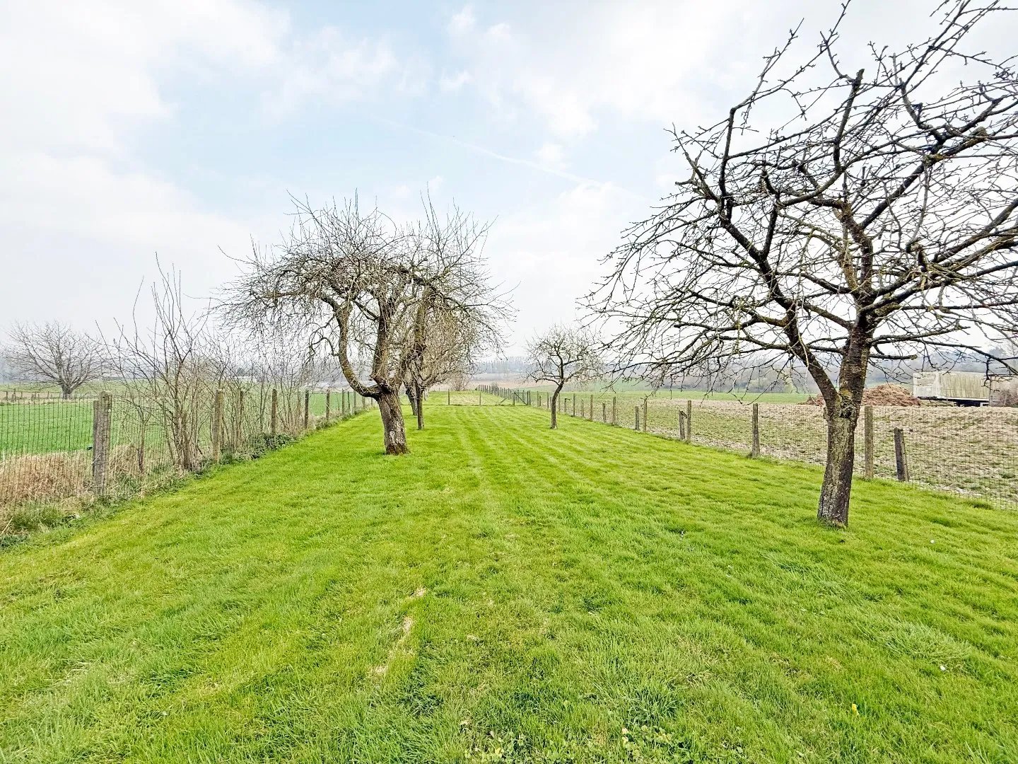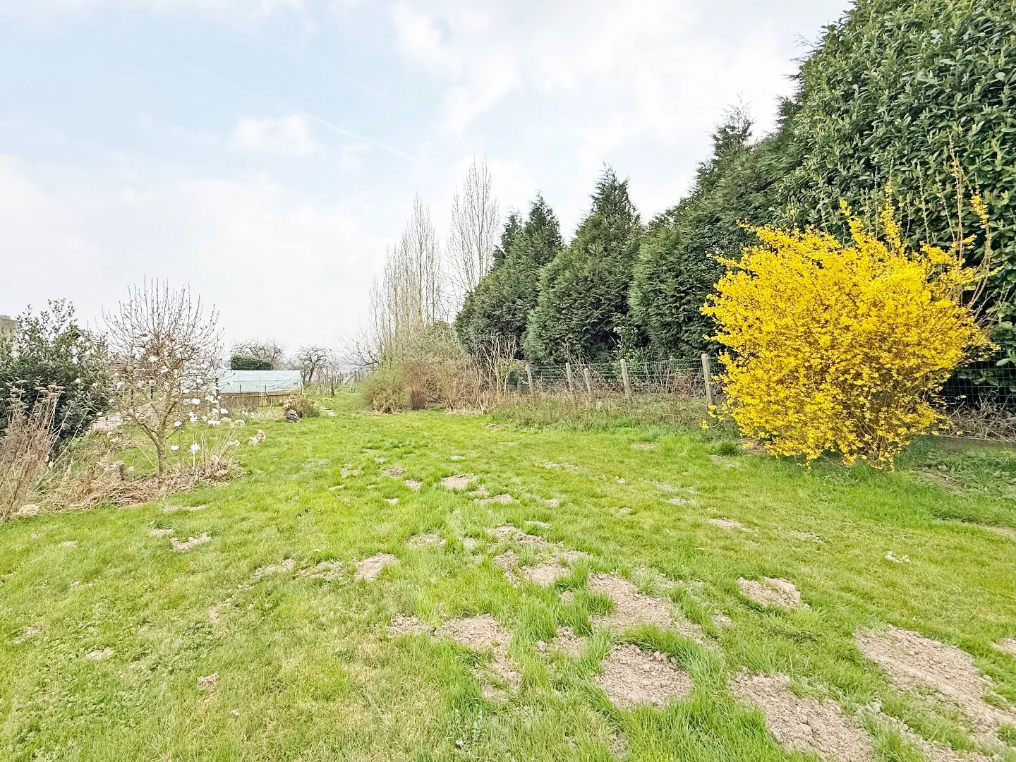 Buiten zijn er +/- 4 parkeerplaatsen op eigen terrein, er is een enorm uitgestrekte tuin met zicht op groen.