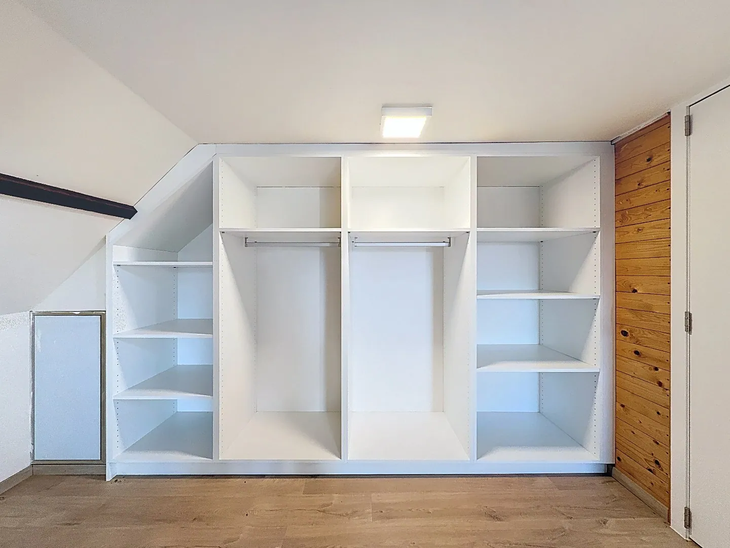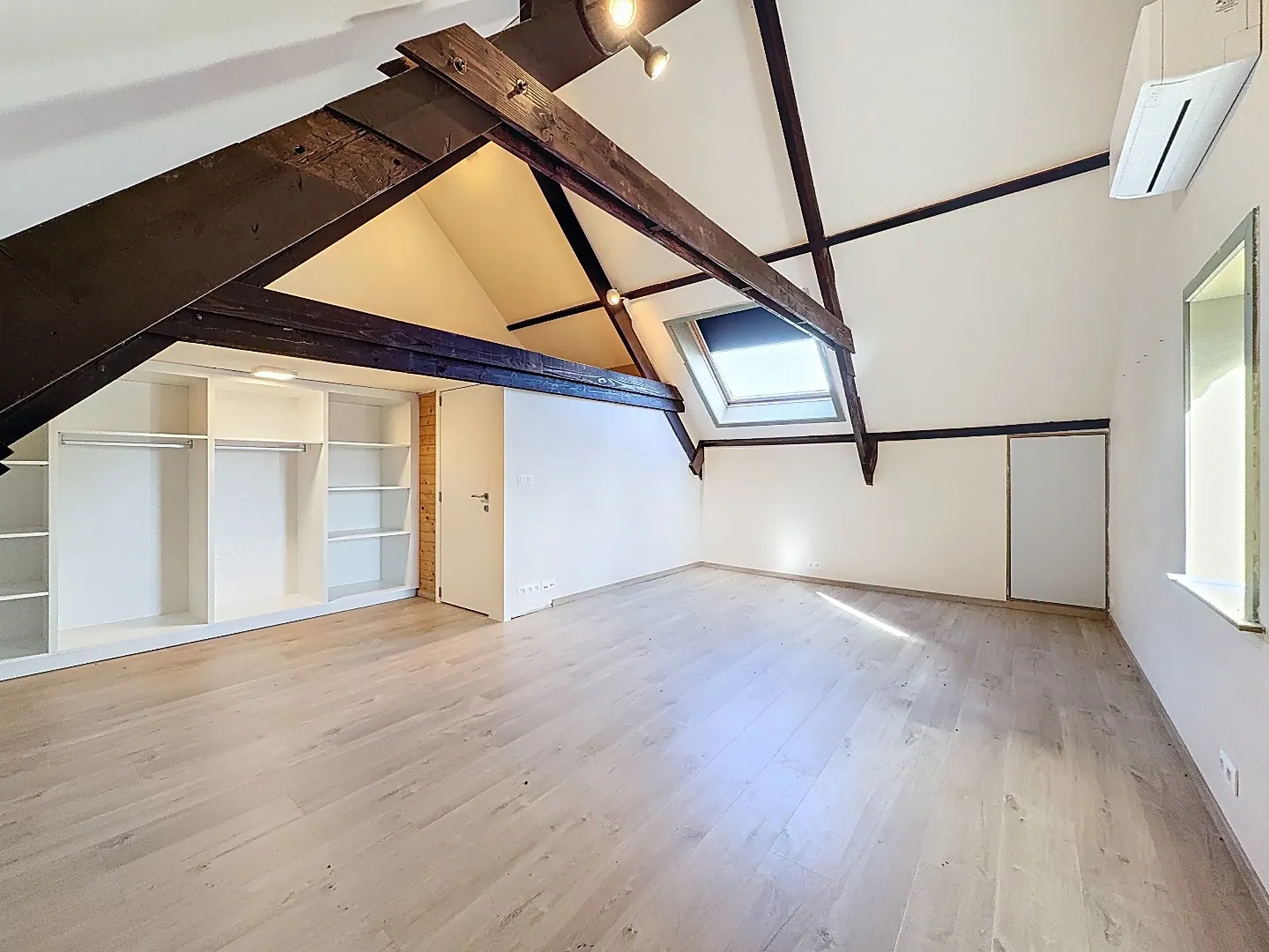 Tweede verdieping: grote (geïsoleerde) en ingerichte zolderkamer (eveneens met maatkasten). Verder is er nog een droge kelder aanwezig.