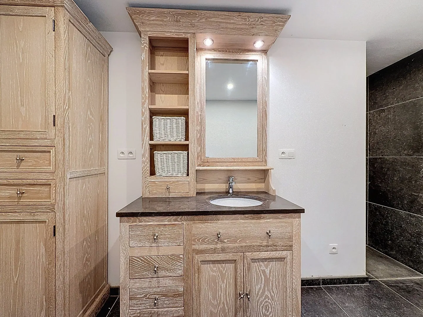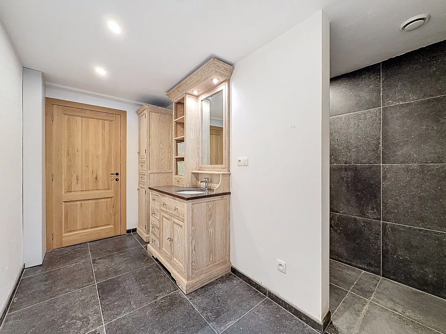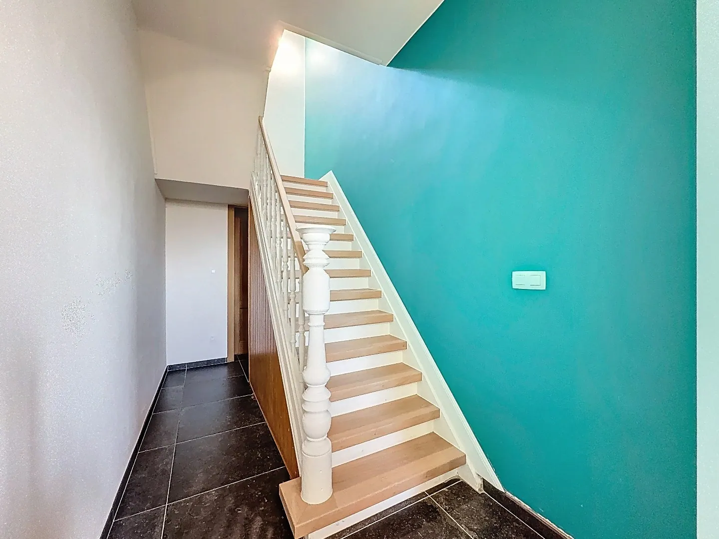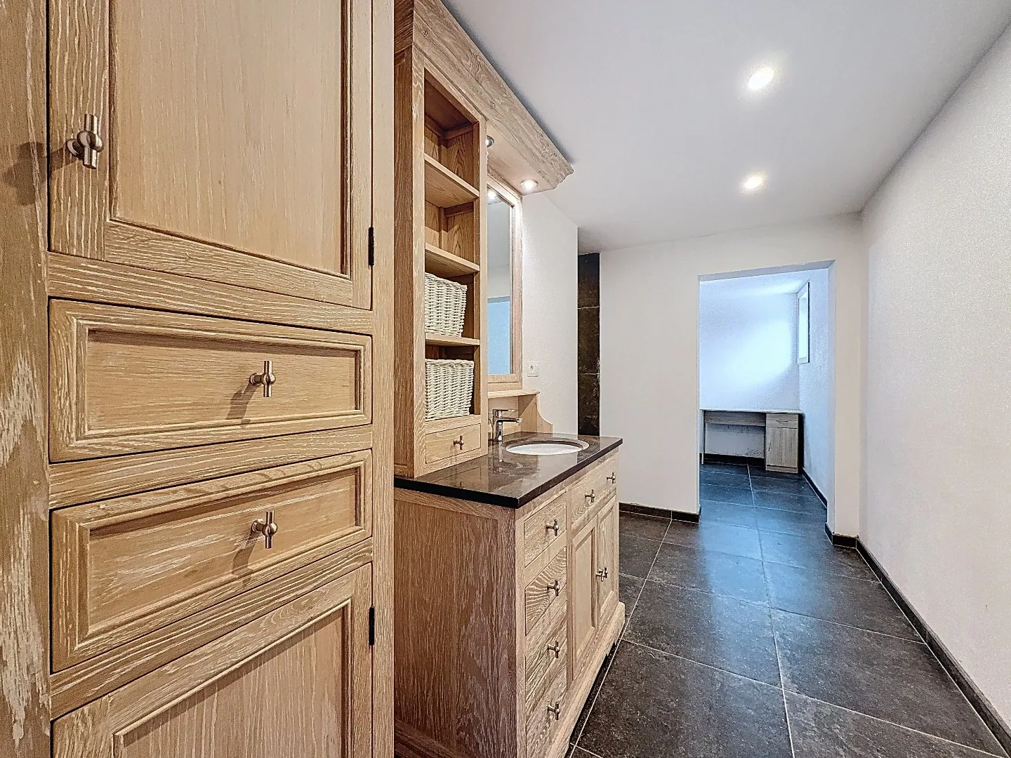 Eerste verdieping: 2 slaapkamers waarvan 1 zeer ruime met aansluitend de ingemaakte dressing.