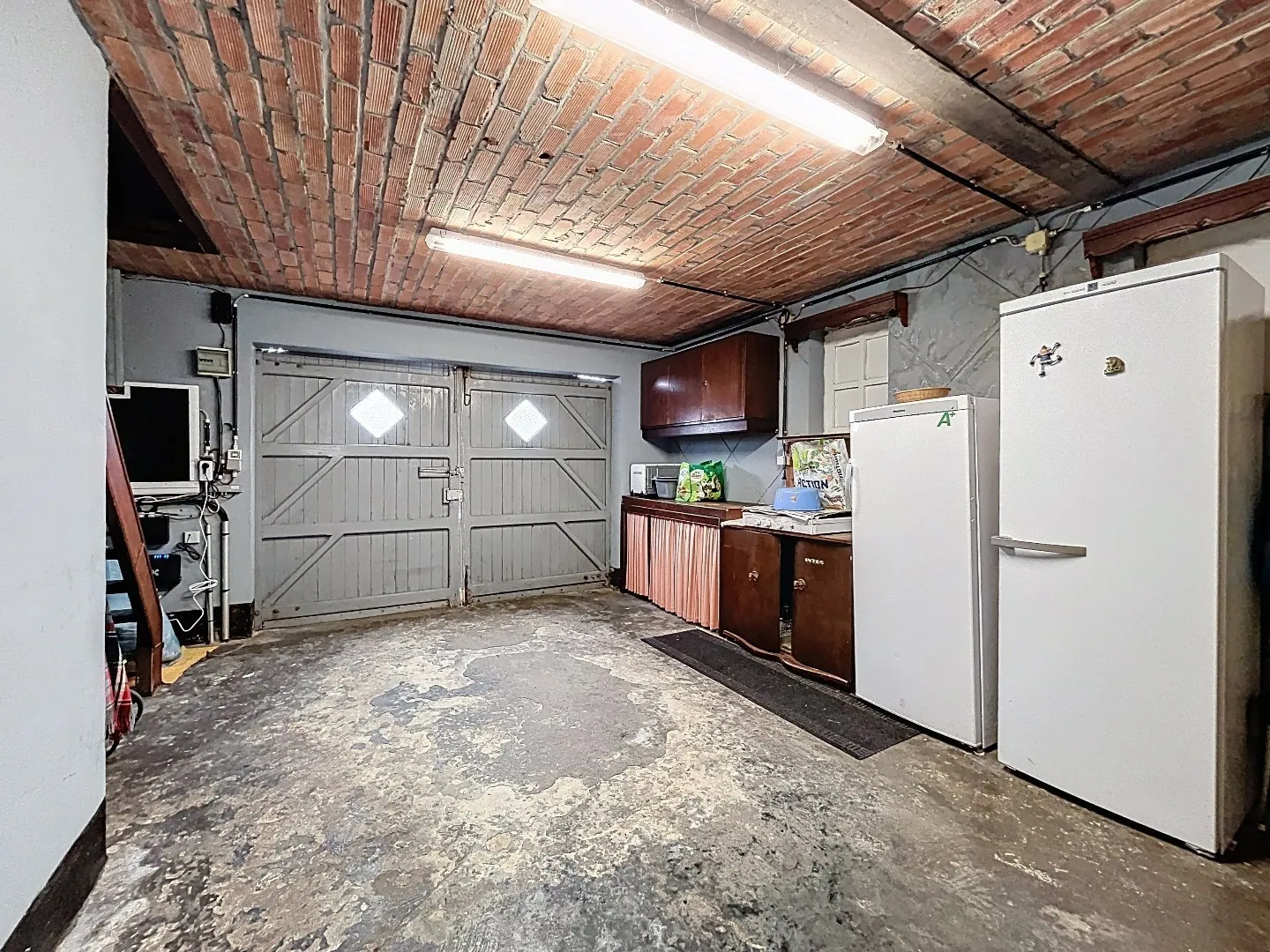 Indeling: op het gelijkvloers: inkom, gezellige leefruimte en eetplaats met kachel, ruime leefkeuken, veranda, wasplaats, toilet, berging, inpandige garage (met zoldertje), ...